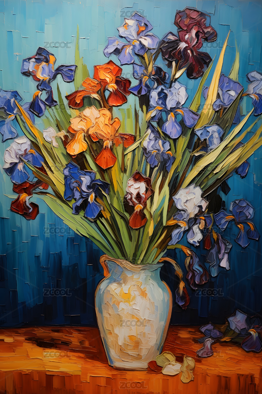 色彩鲜艳的花卉静物画油画肌理中世纪复古感