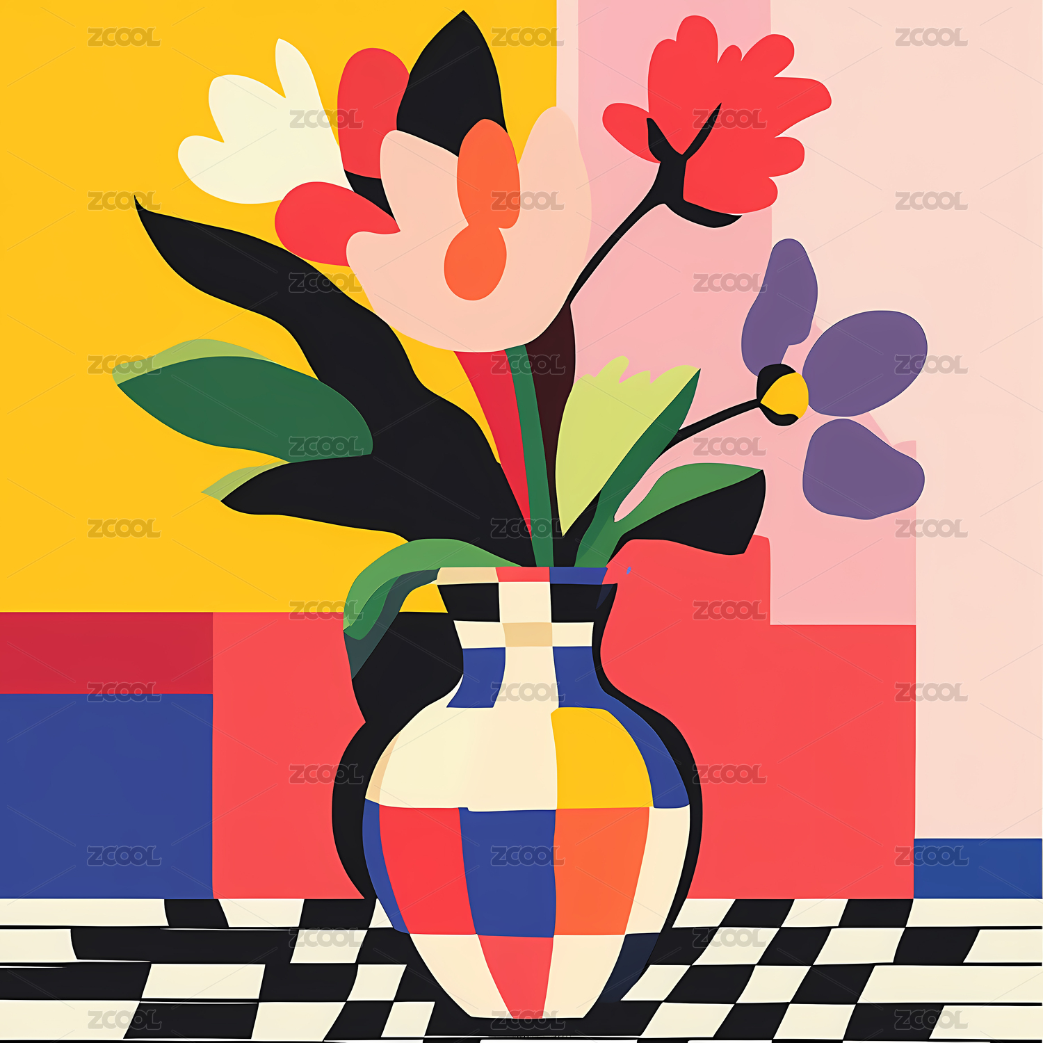 色彩过渡,花卉静物,盛开的花朵,装饰画,温暖,花瓶