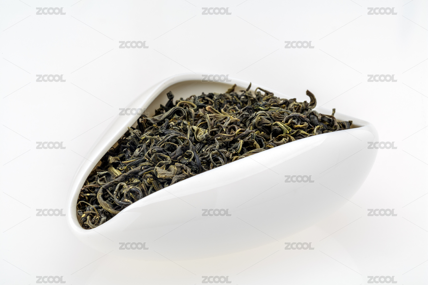 白色背景的绿茶叶