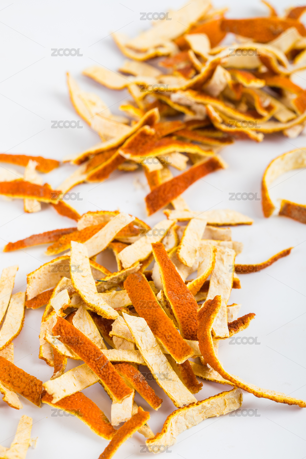 放着白背景上的陈皮段