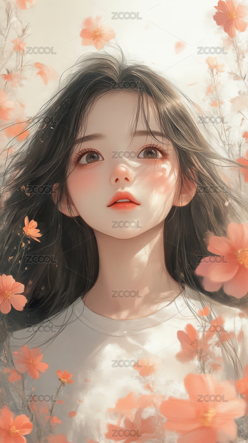 鲜花,美女,女孩,女生,植物,竖构图,对视,长发