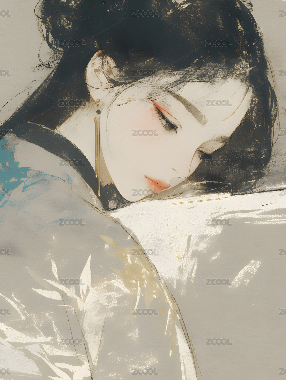 古风,汉服,女孩,美女,竖构图,古装,少女,女生,插画,闭眼