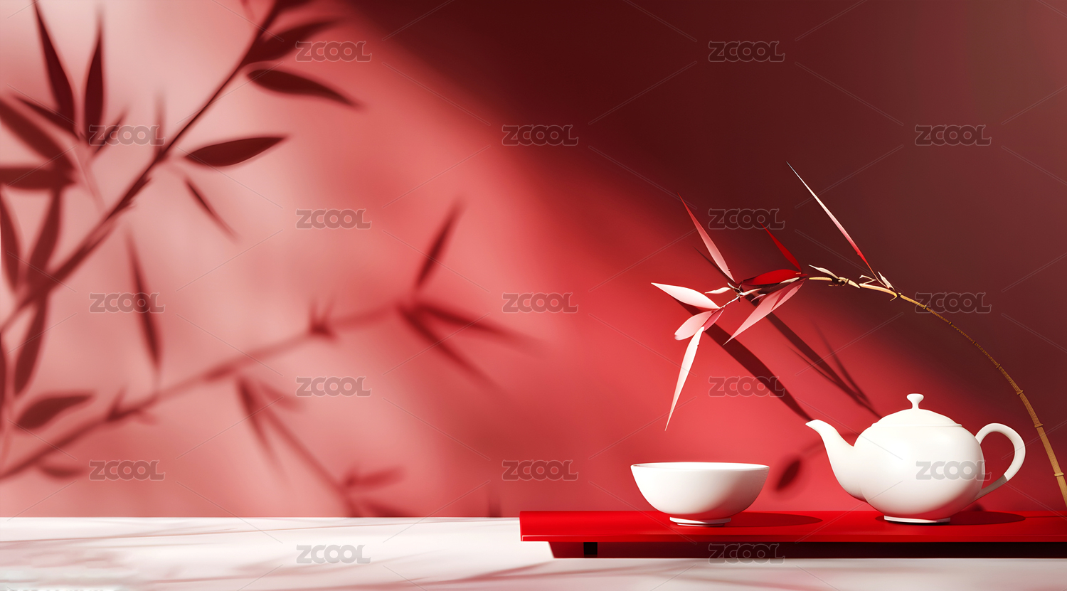 竹叶背景中的茶壶中国风场景