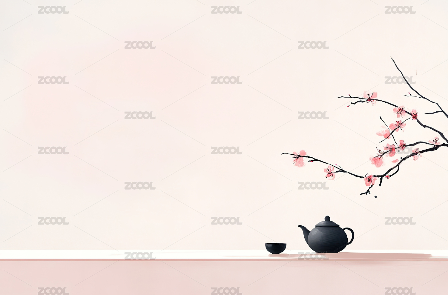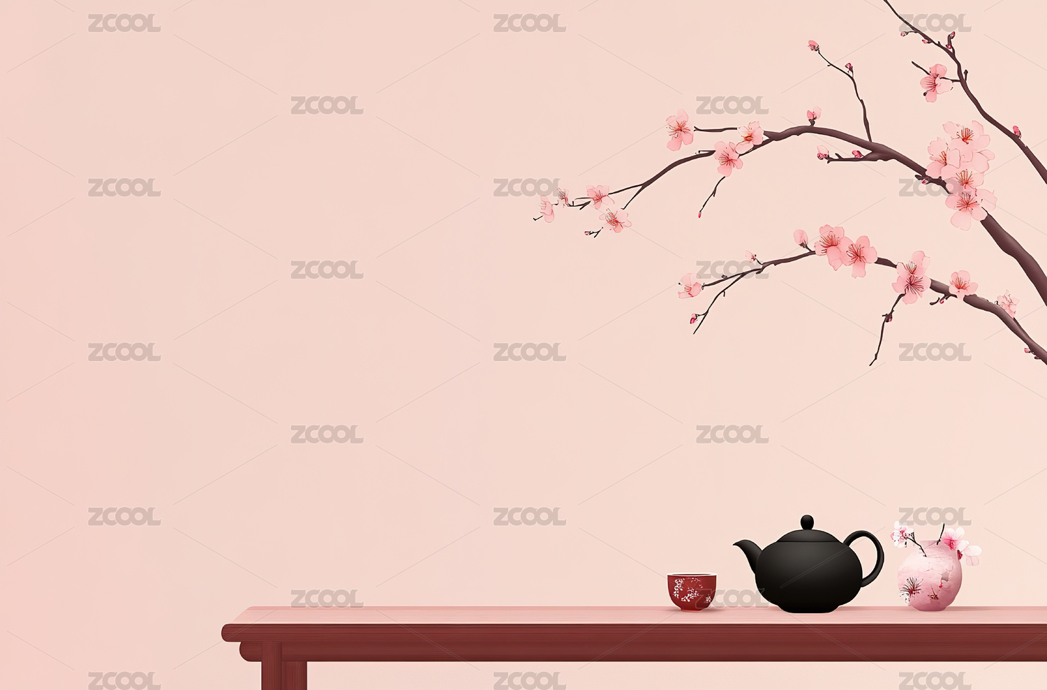 日式茶室中的精致茶壶与樱花