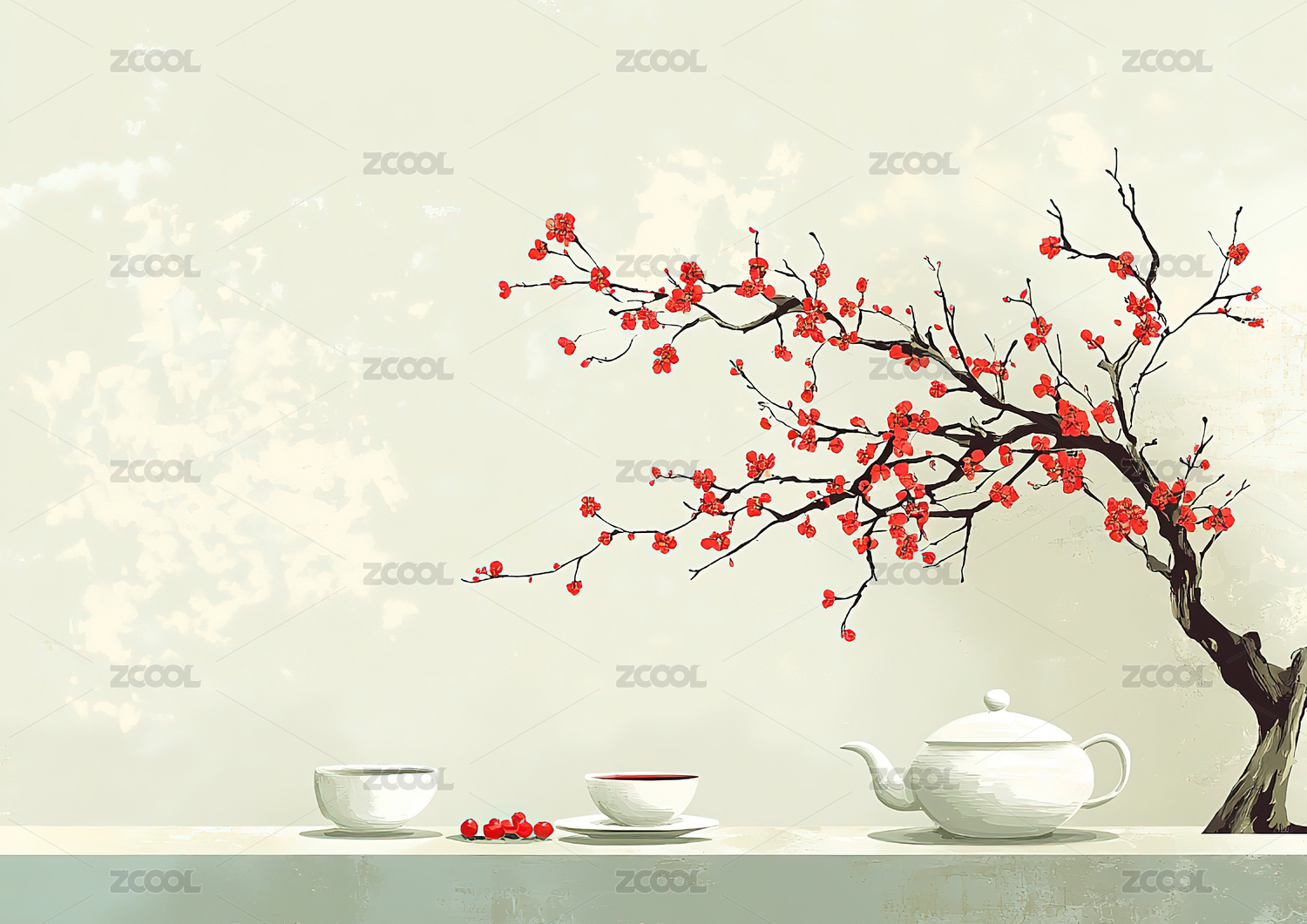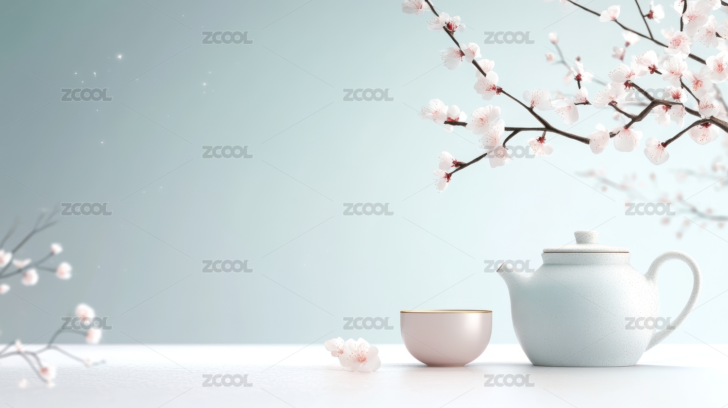 樱花与茶具的意境