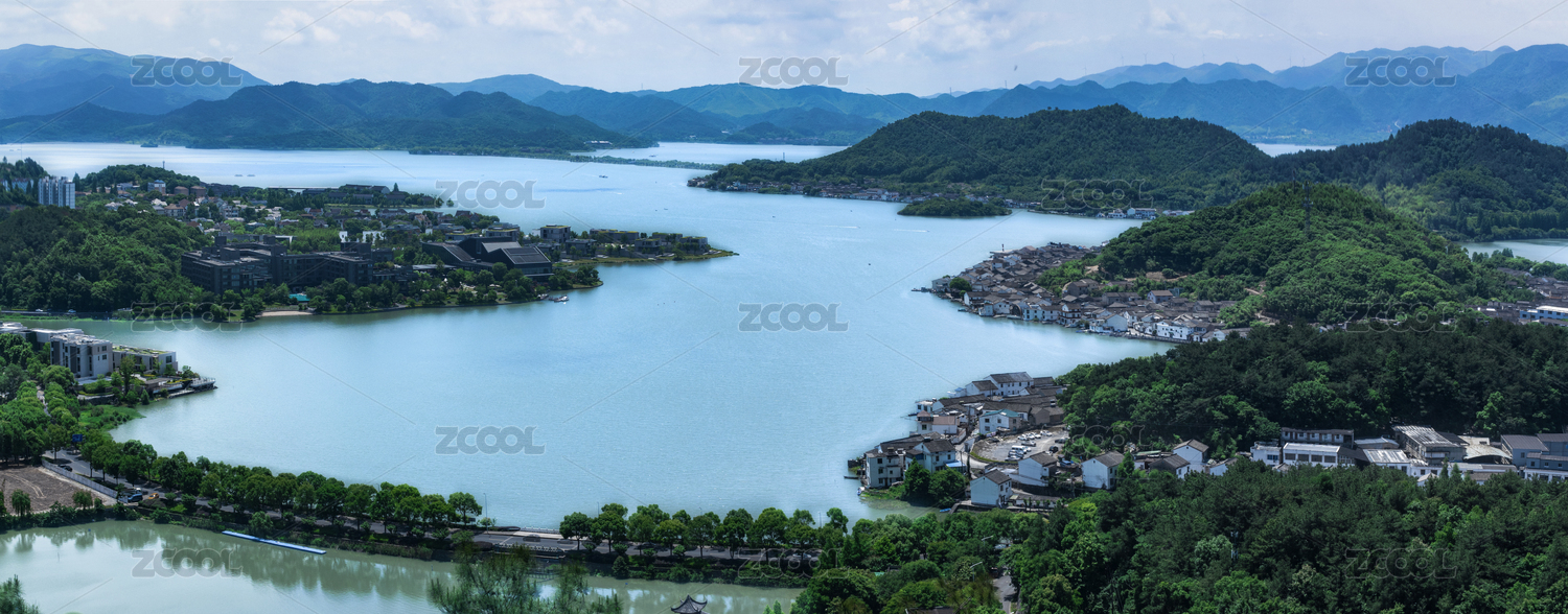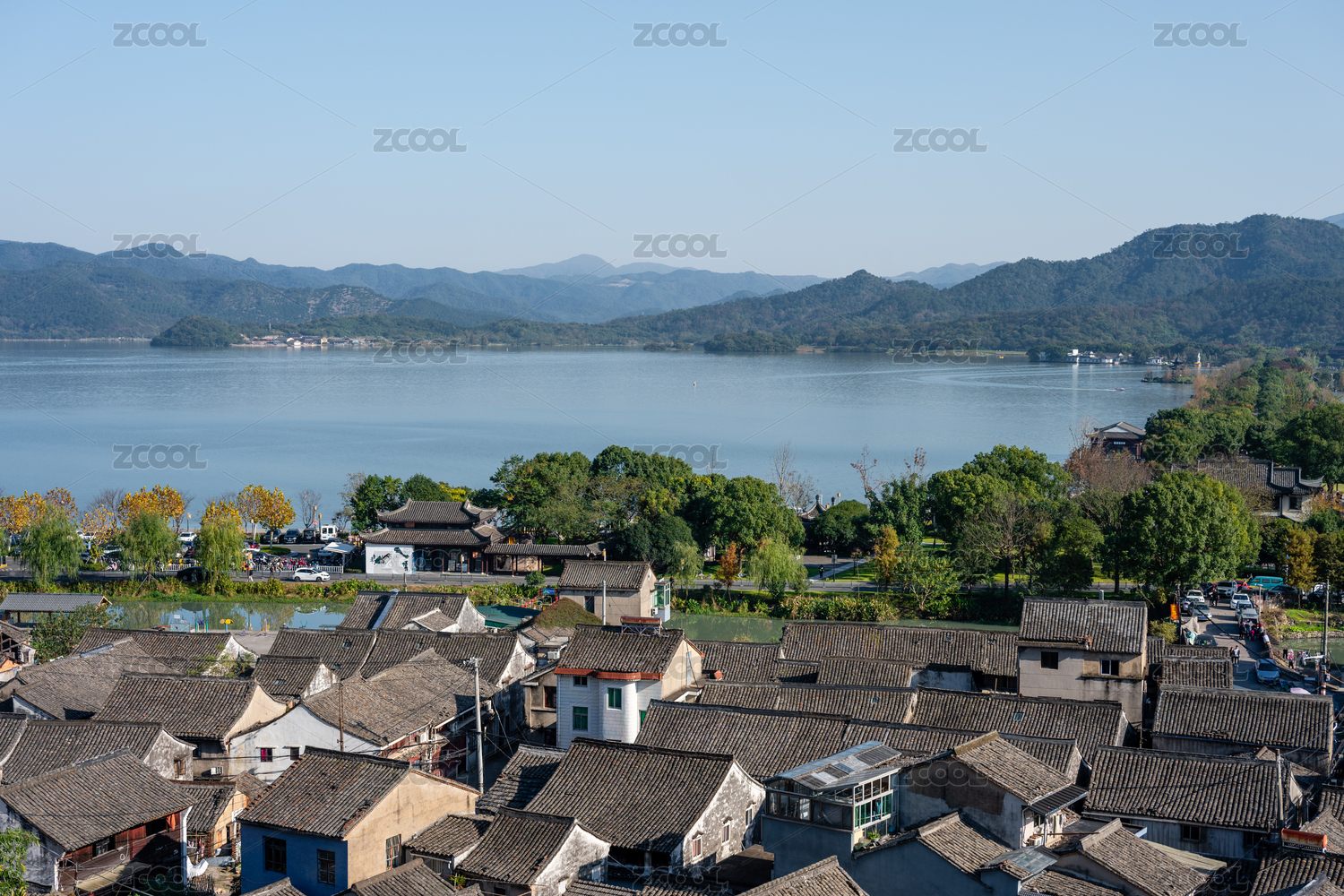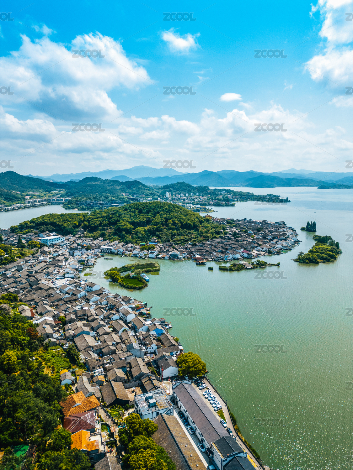 中国浙江省宁波鄞州区东钱湖风景区殷湾村航拍图