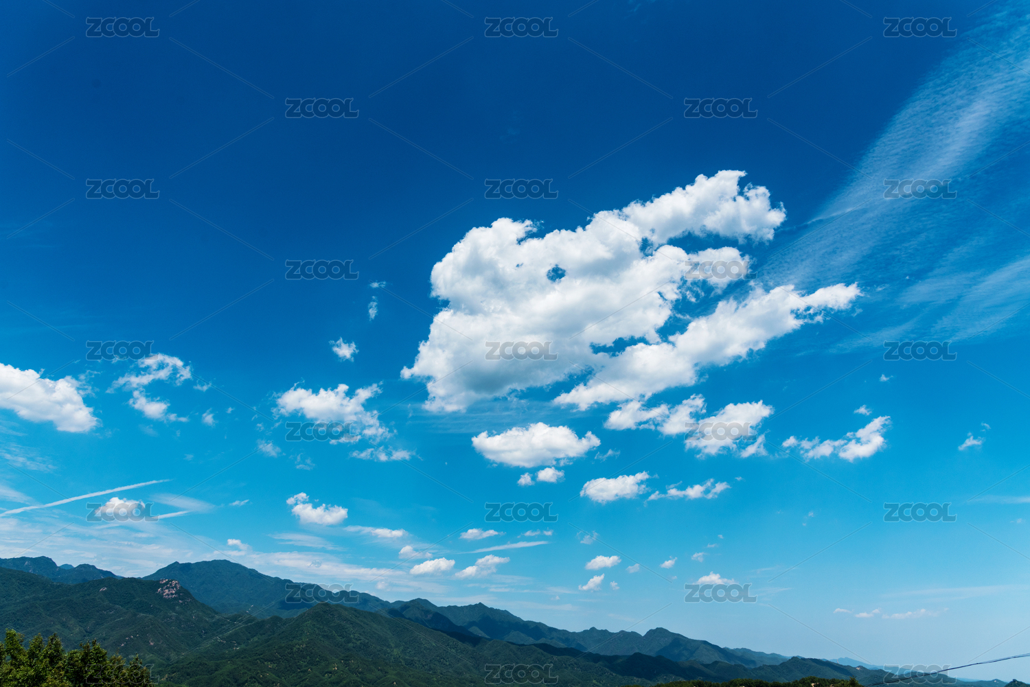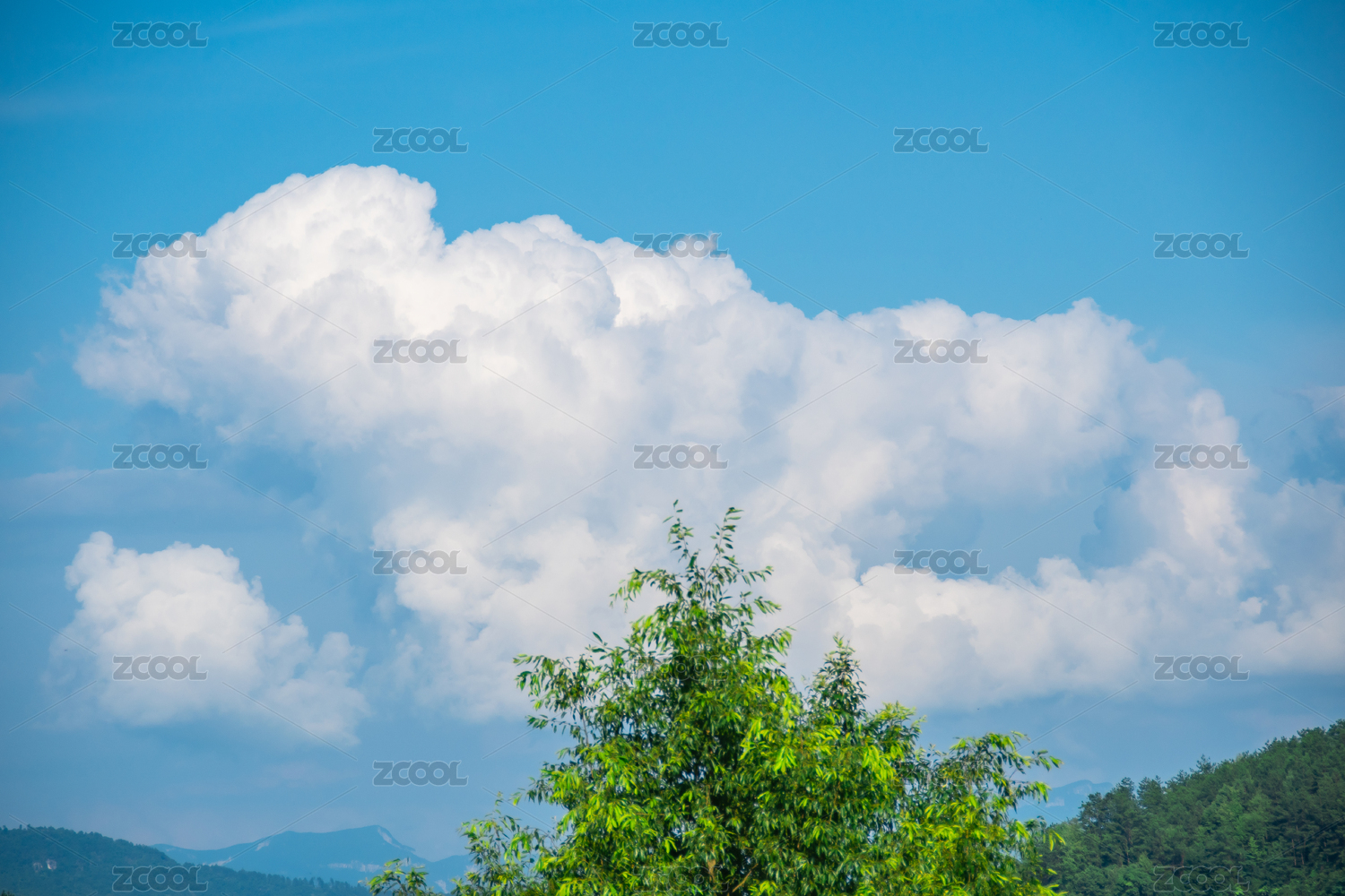 晴朗,山峰,绿色,夏季,植物,植被,云,白云,云层,舒适