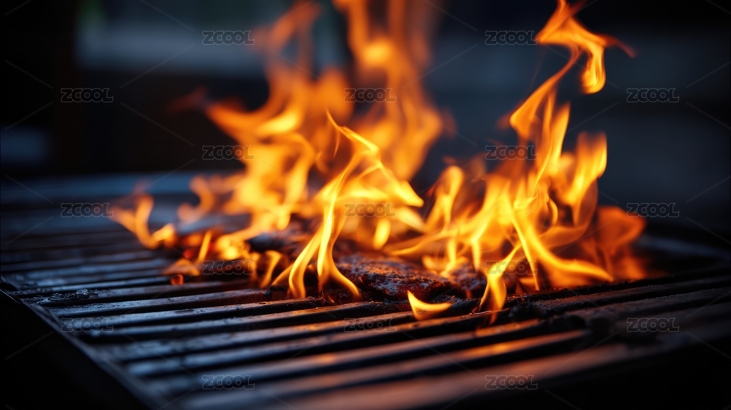 木炭烤炉特写,炽热余烬闪烁烟雾袅袅上升