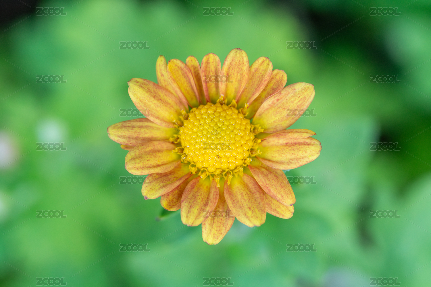 一朵绽放的黄色小雏菊特写