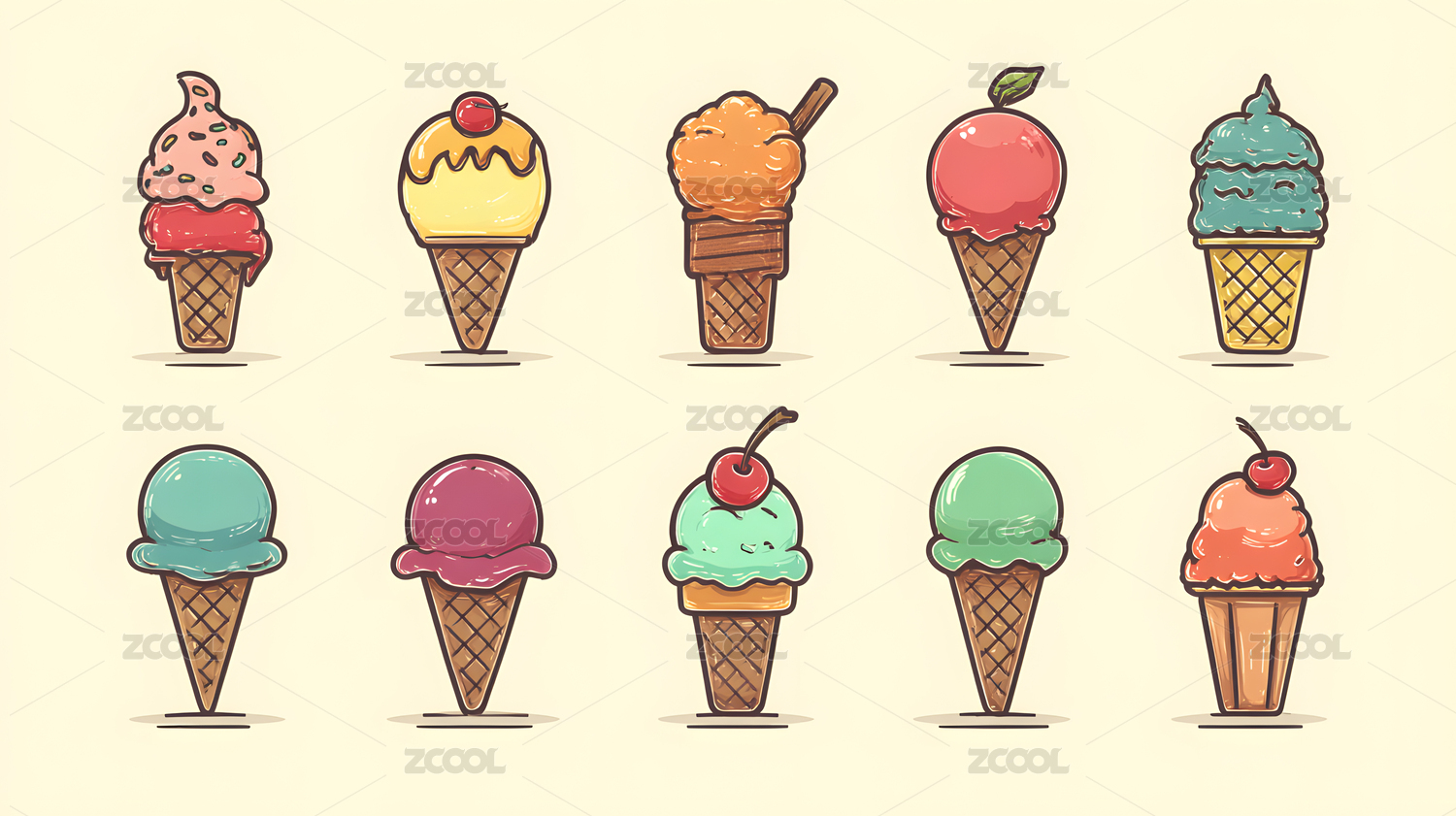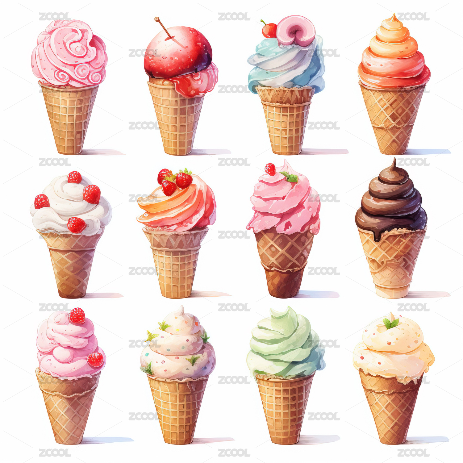夏季五彩缤纷冰淇淋雪糕西瓜矢量插画元素