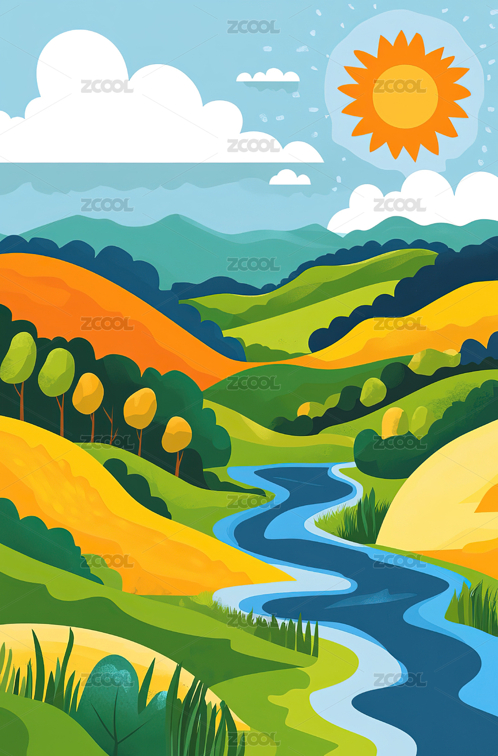 天空,户外,夏天,运动,动作,活动,绿色,扁平化设计,卡通
