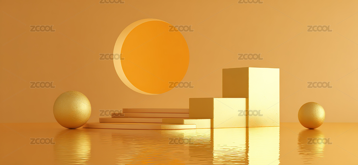 金色几何体与光影场景
