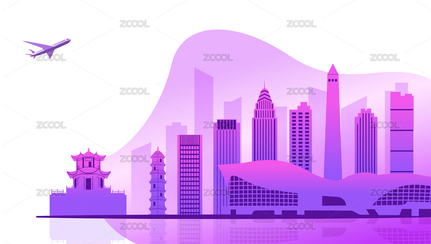 中国,内蒙古自治区,鄂尔多斯市,城市,地标,建筑,天际线,矢量,插画,扁平