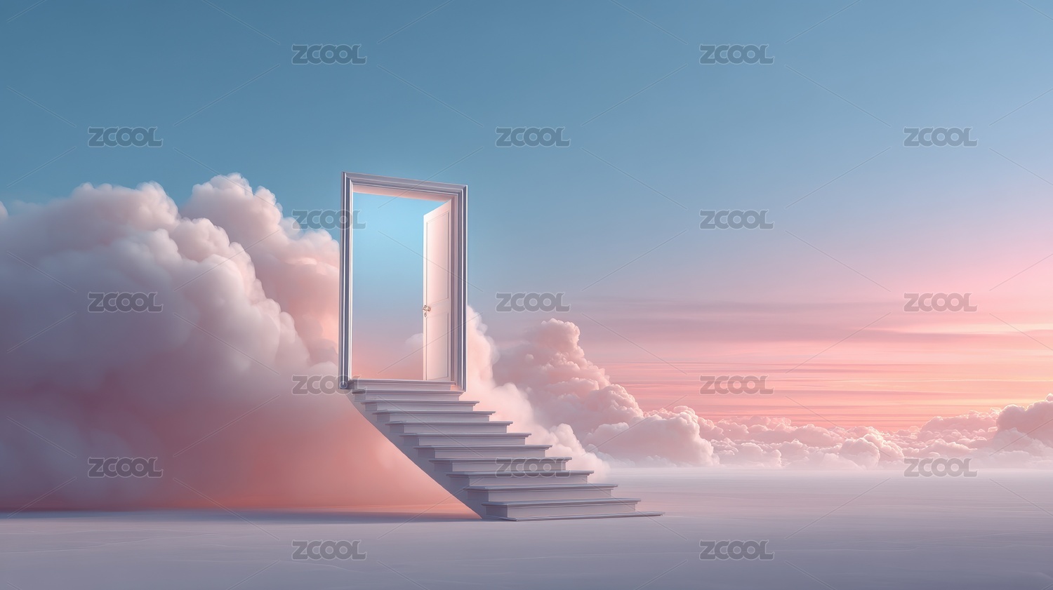 抽象,无人,门,天空,梦幻,未来,自然,云端,传送门,光
