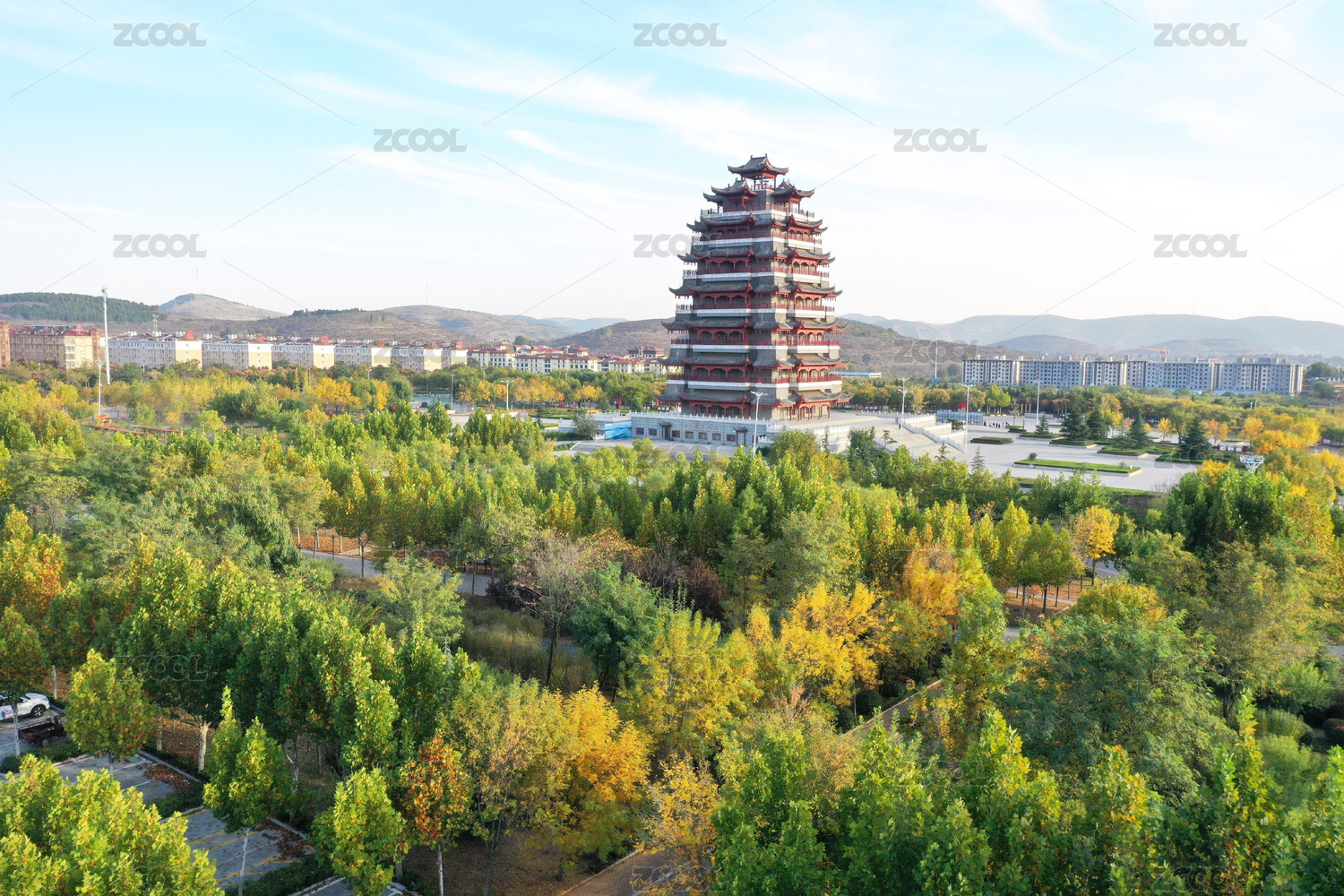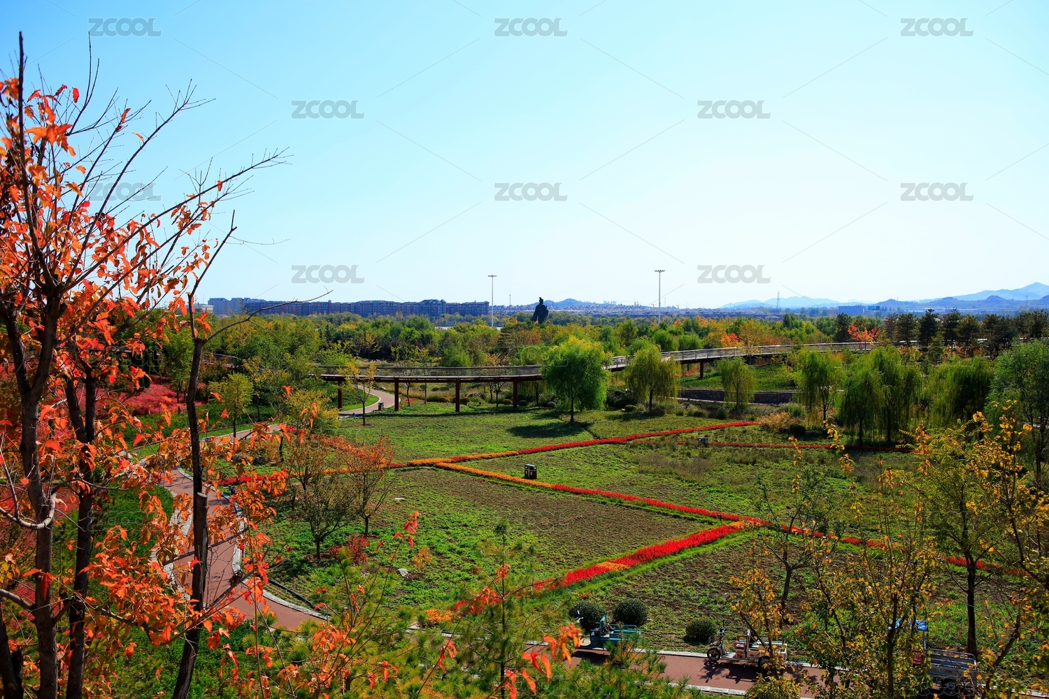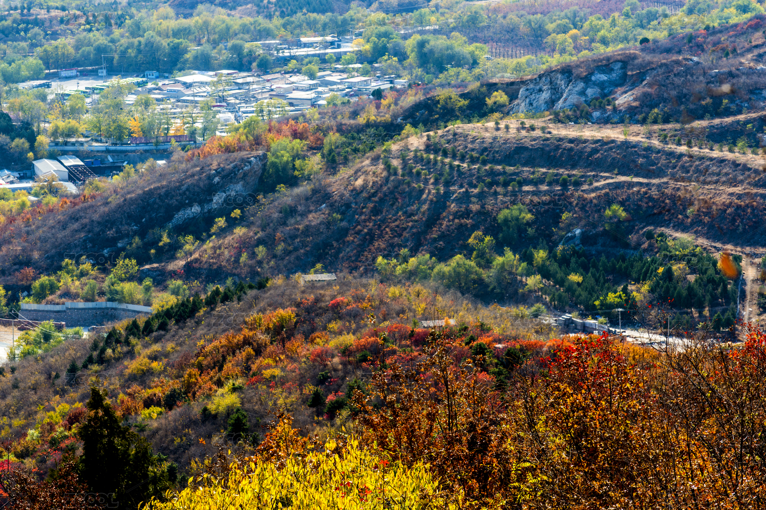 北京京西北宫森林公园秋天高角度俯瞰红叶风光