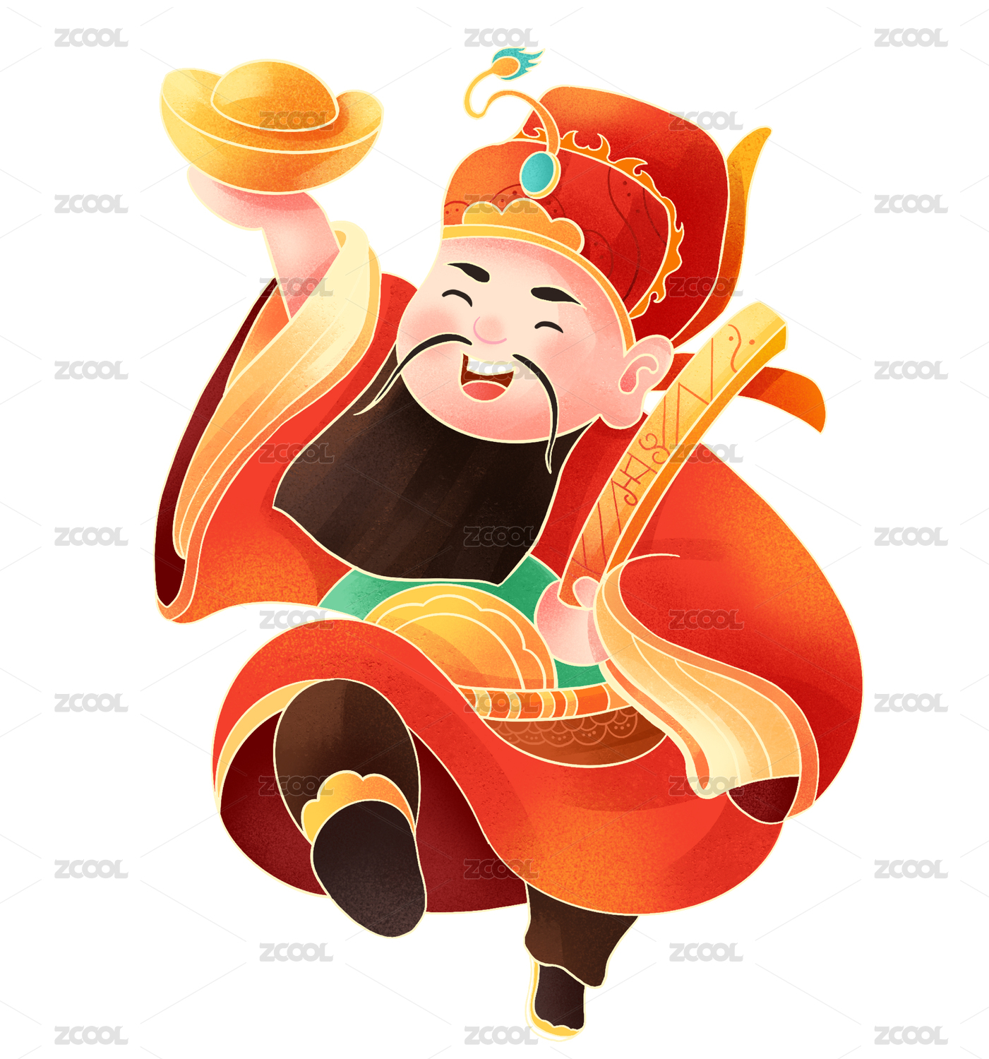 小年红色财神拿元宝元素
