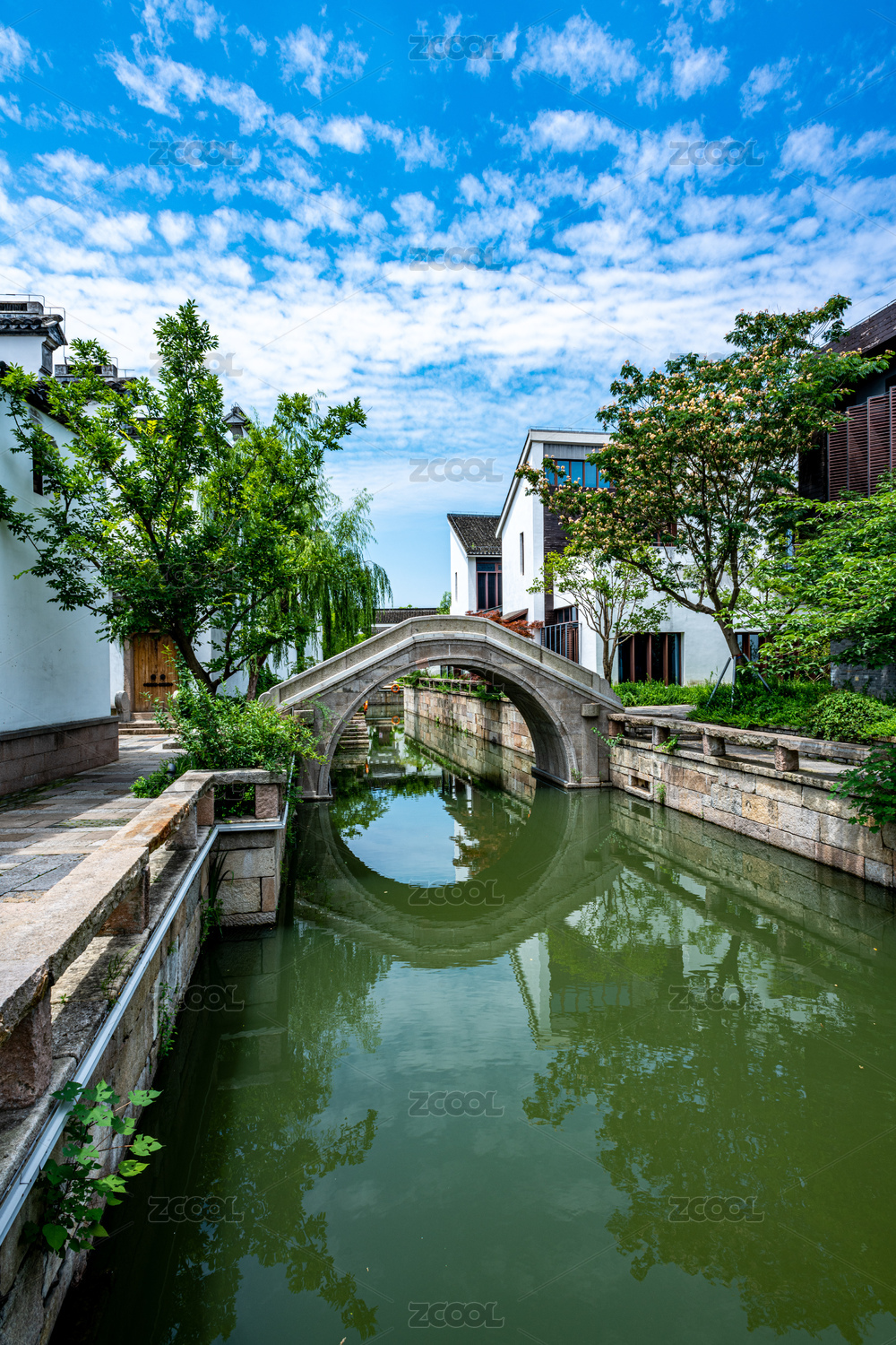上海嘉定州桥老街法河流水域民居建筑倒影