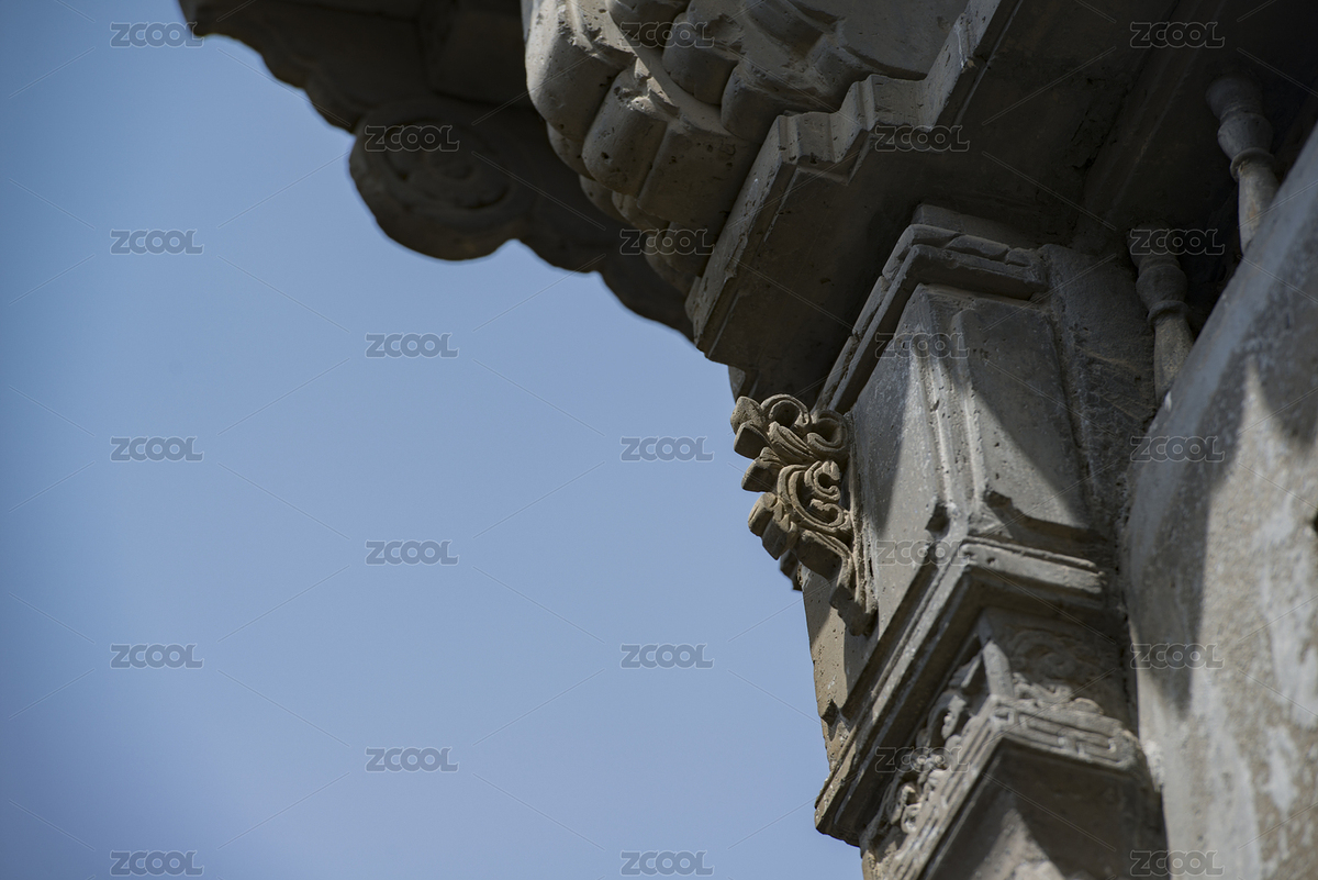 古建筑屋檐上的石雕兽