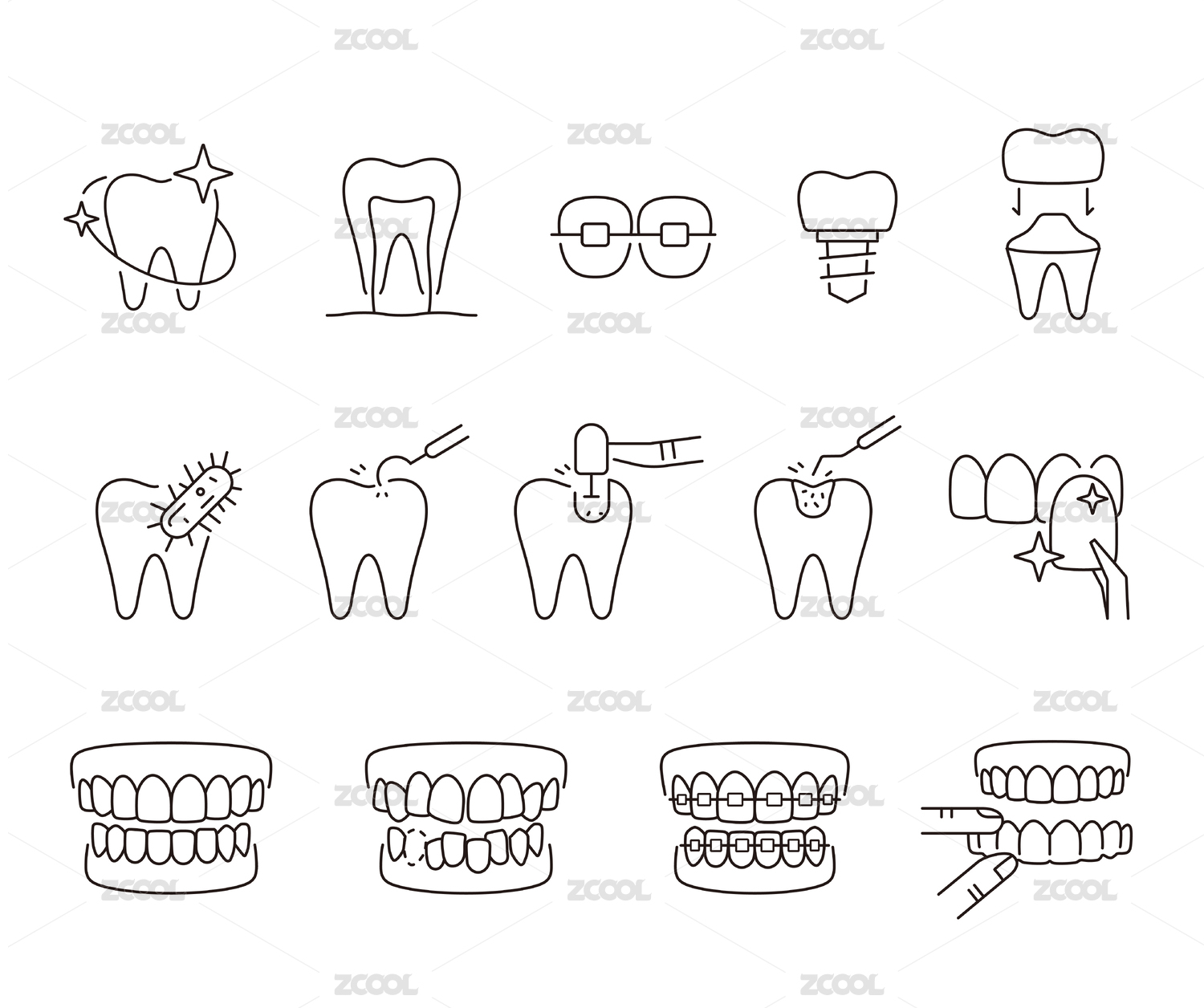 牙齿图标, 照顾你的牙齿, 牙科概念,