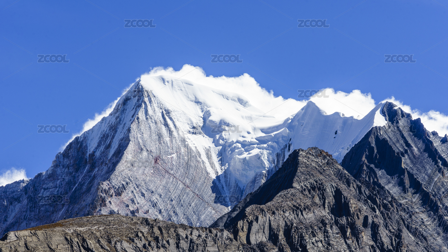 四姑娘山双桥沟景区雪山晴空蓝天白云