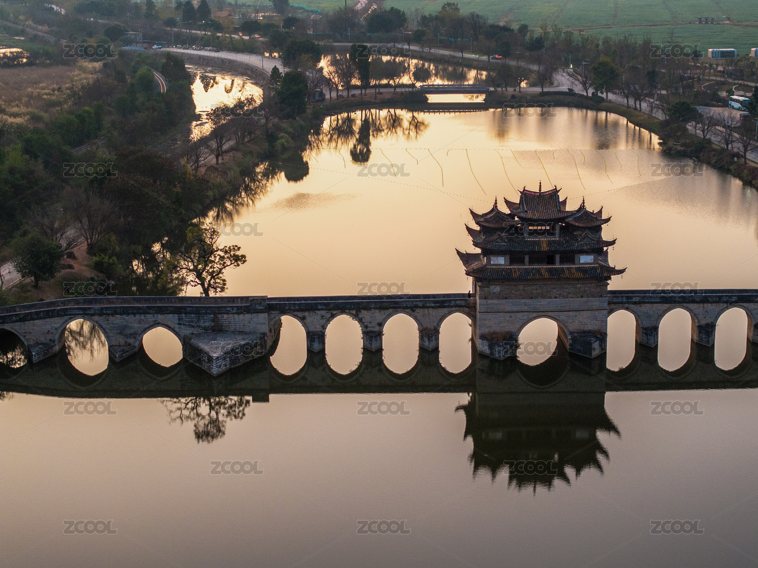 红河州建水古城双龙桥十七孔桥日出清晨航拍