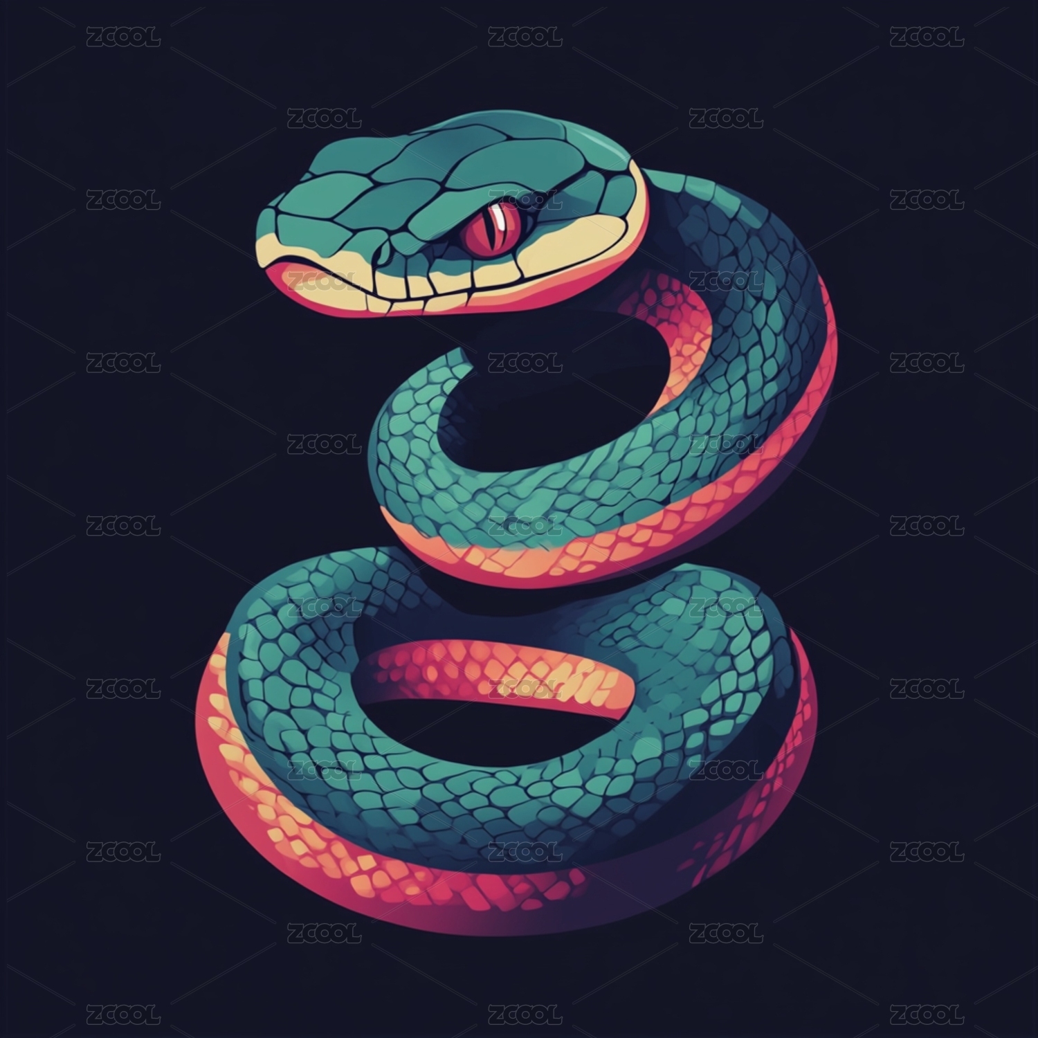 扁平插画风格小蛇形象