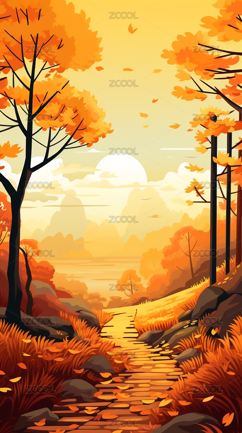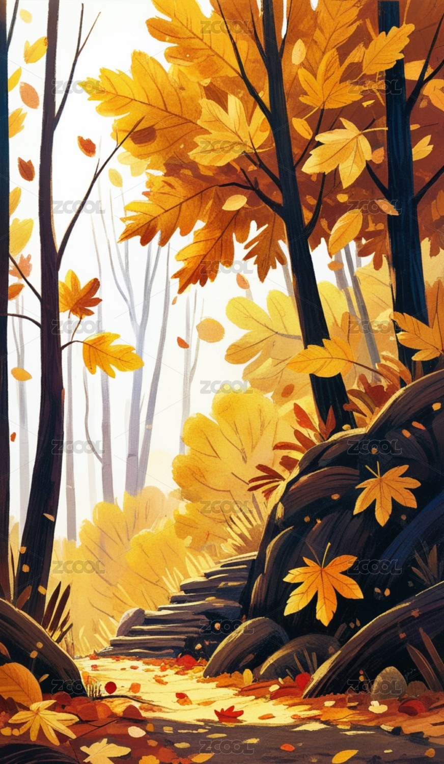 秋天,秋日,森林,树,落叶,金黄色,橙色,小溪,草地,植物