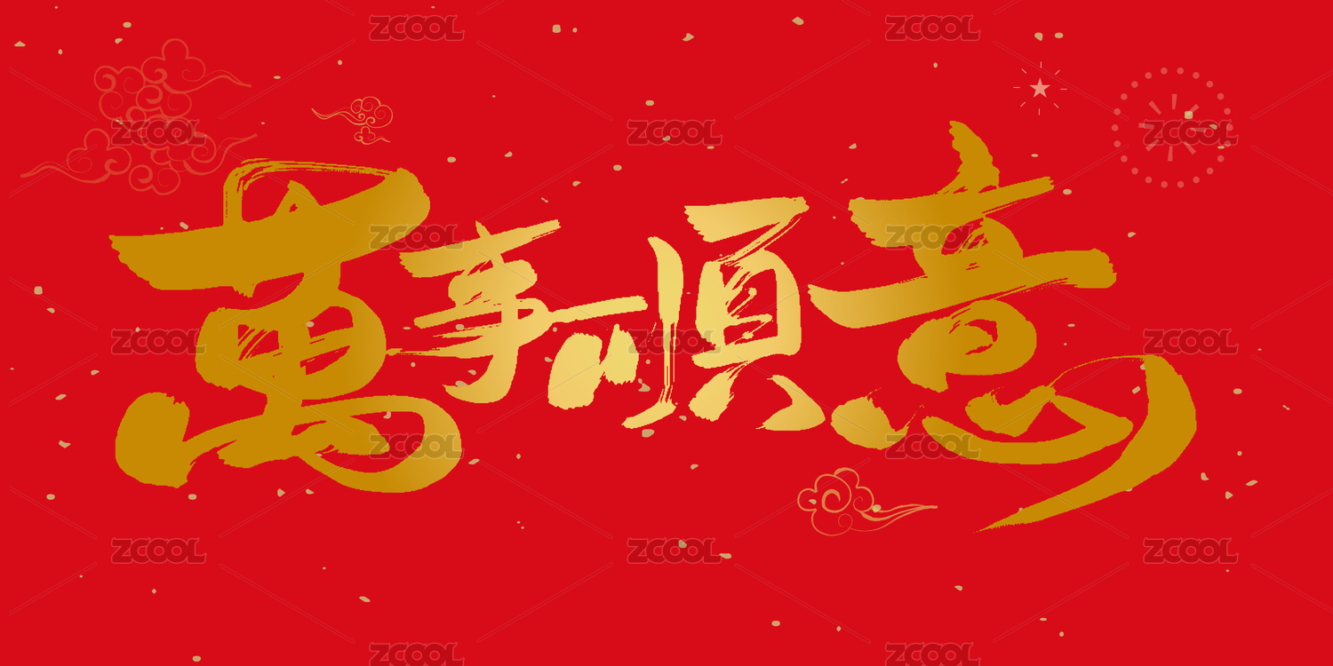 春节新年喜庆手写毛笔书法字祝福语万事顺意