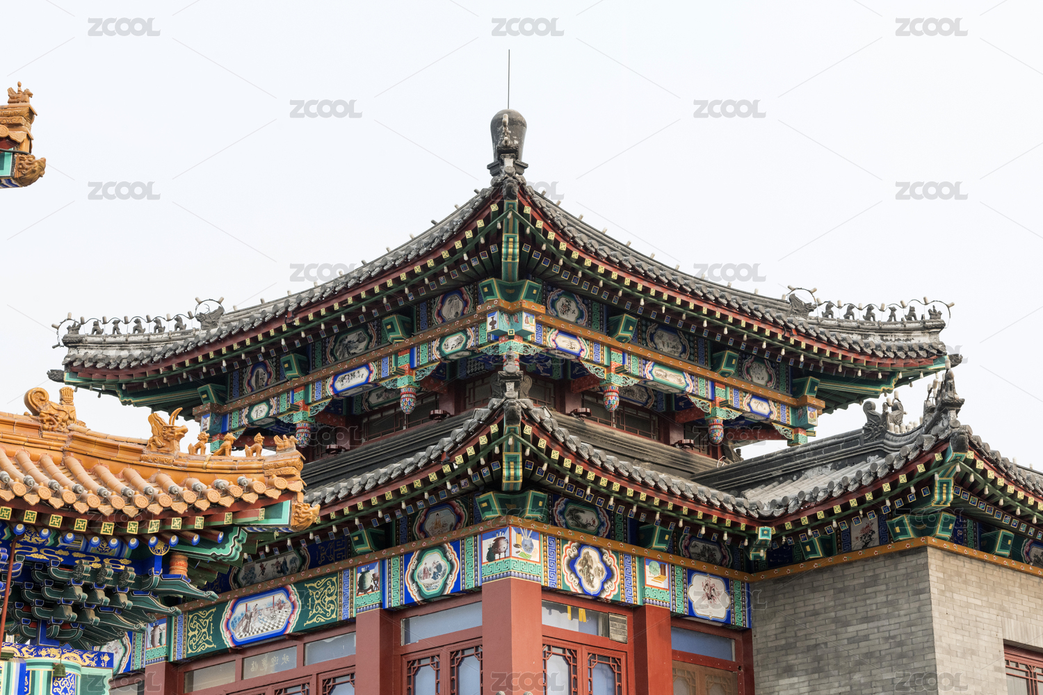 承德寺庙顶部龙与瓦片,雕花,脊兽