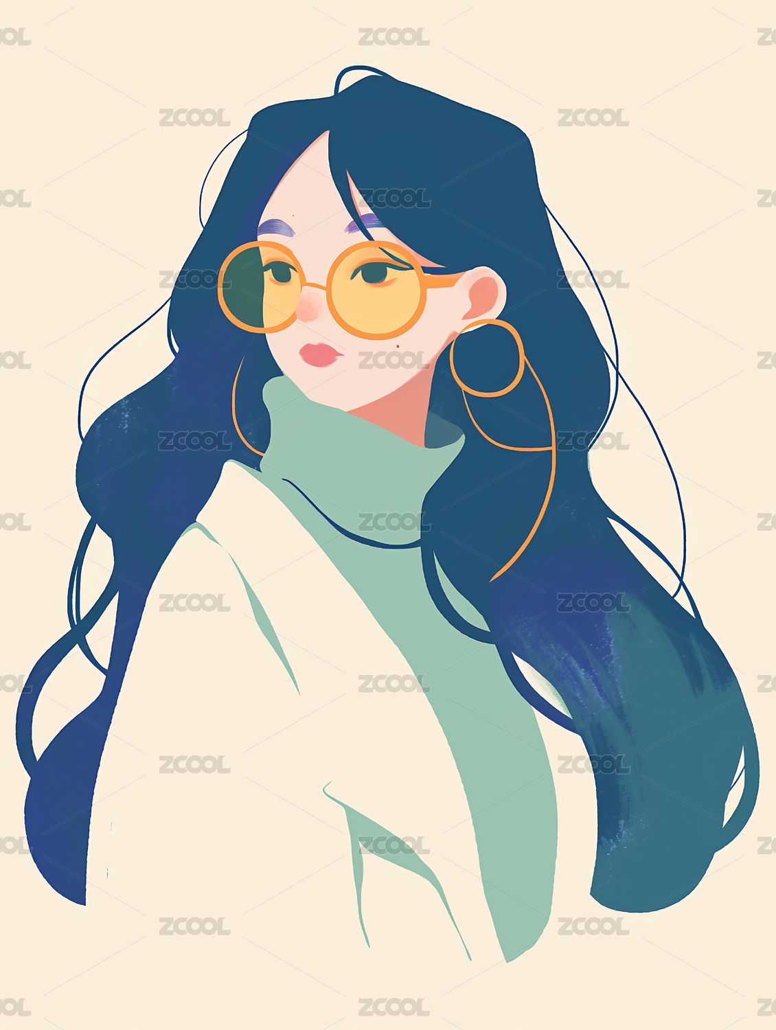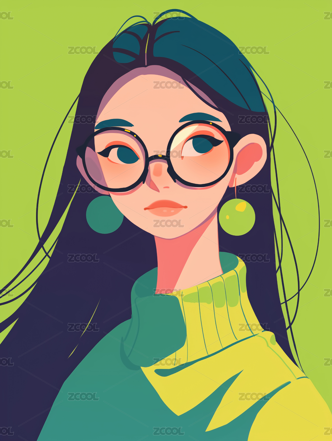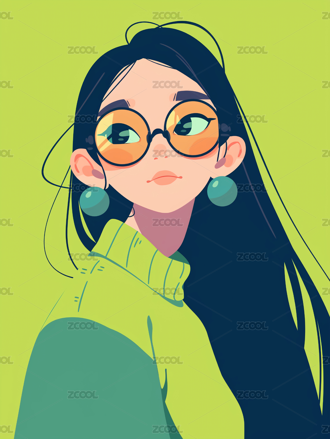 女孩,时尚,个性,太阳镜,绿色,紫色,耳环,张扬,长发,背景