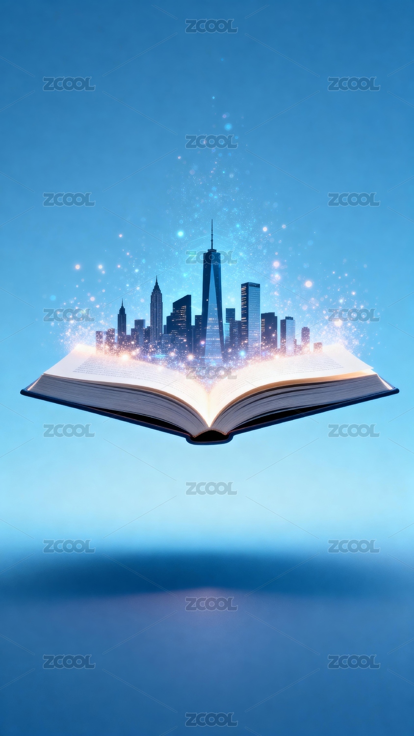 魔法书,高楼大厦,模型,全息,夜晚,奇幻,璀璨,3D世界,灯光,未来城