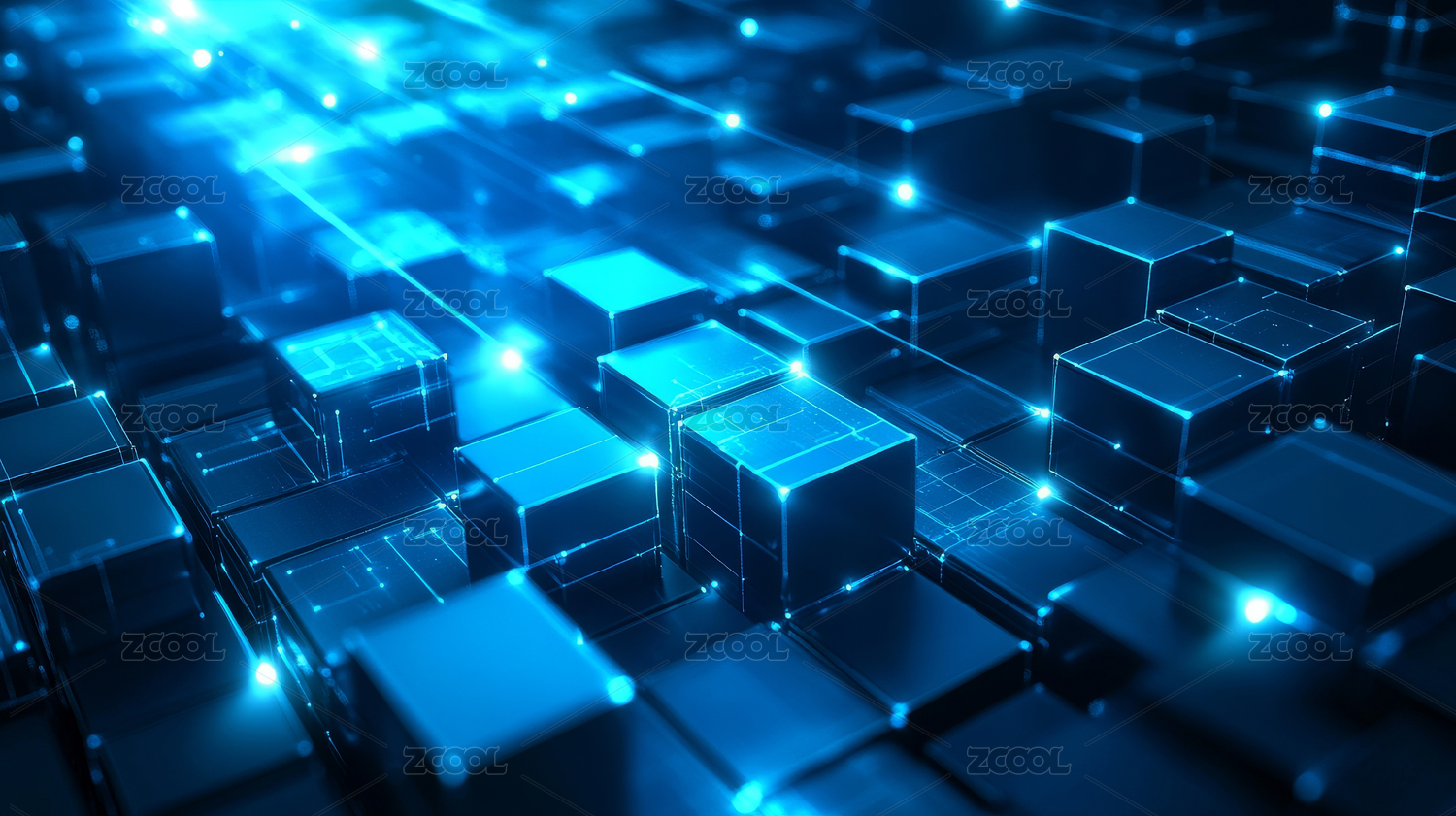 蓝色发光立方体科技场景