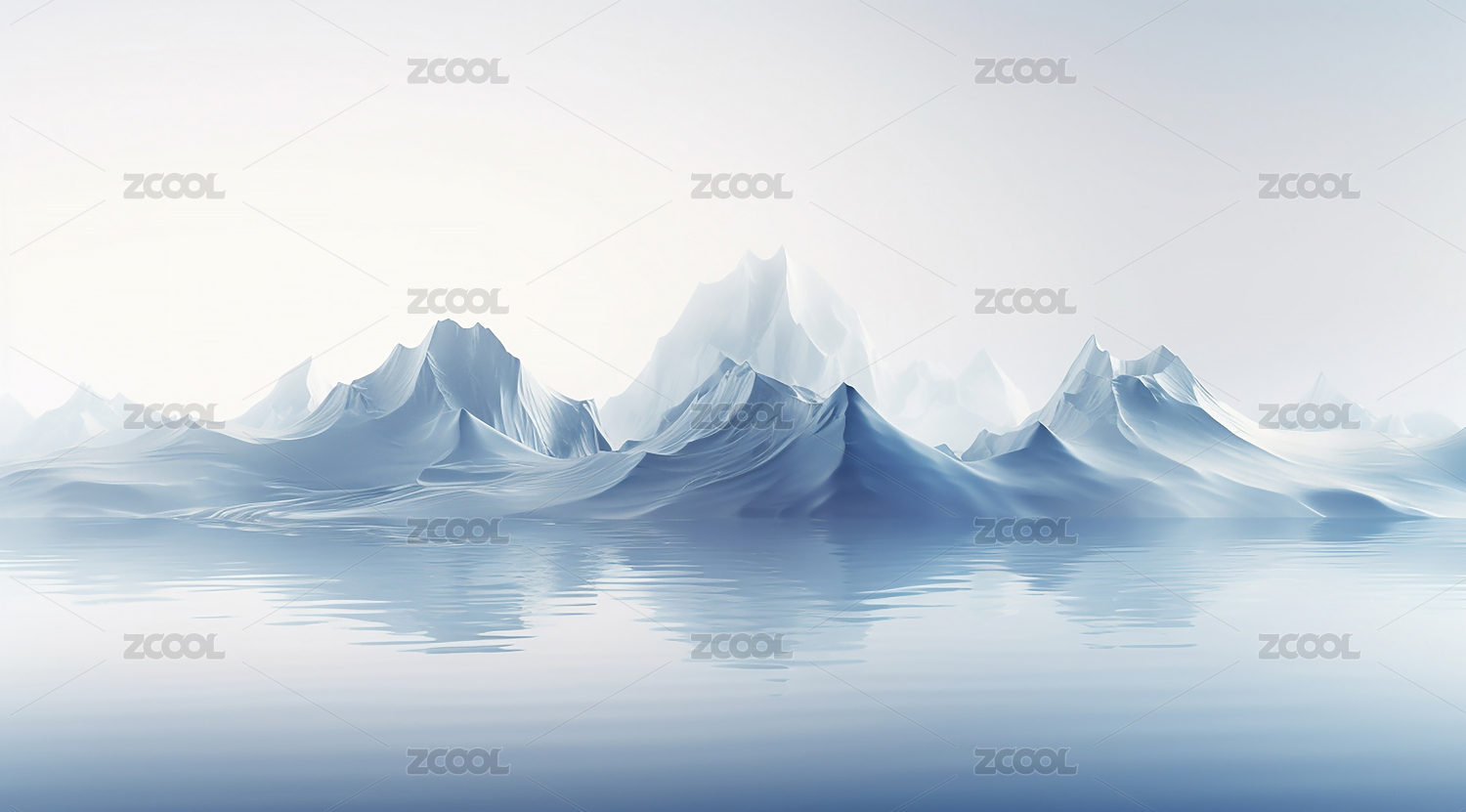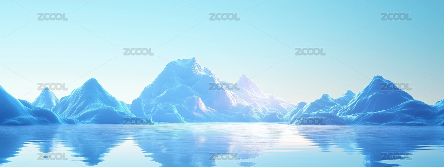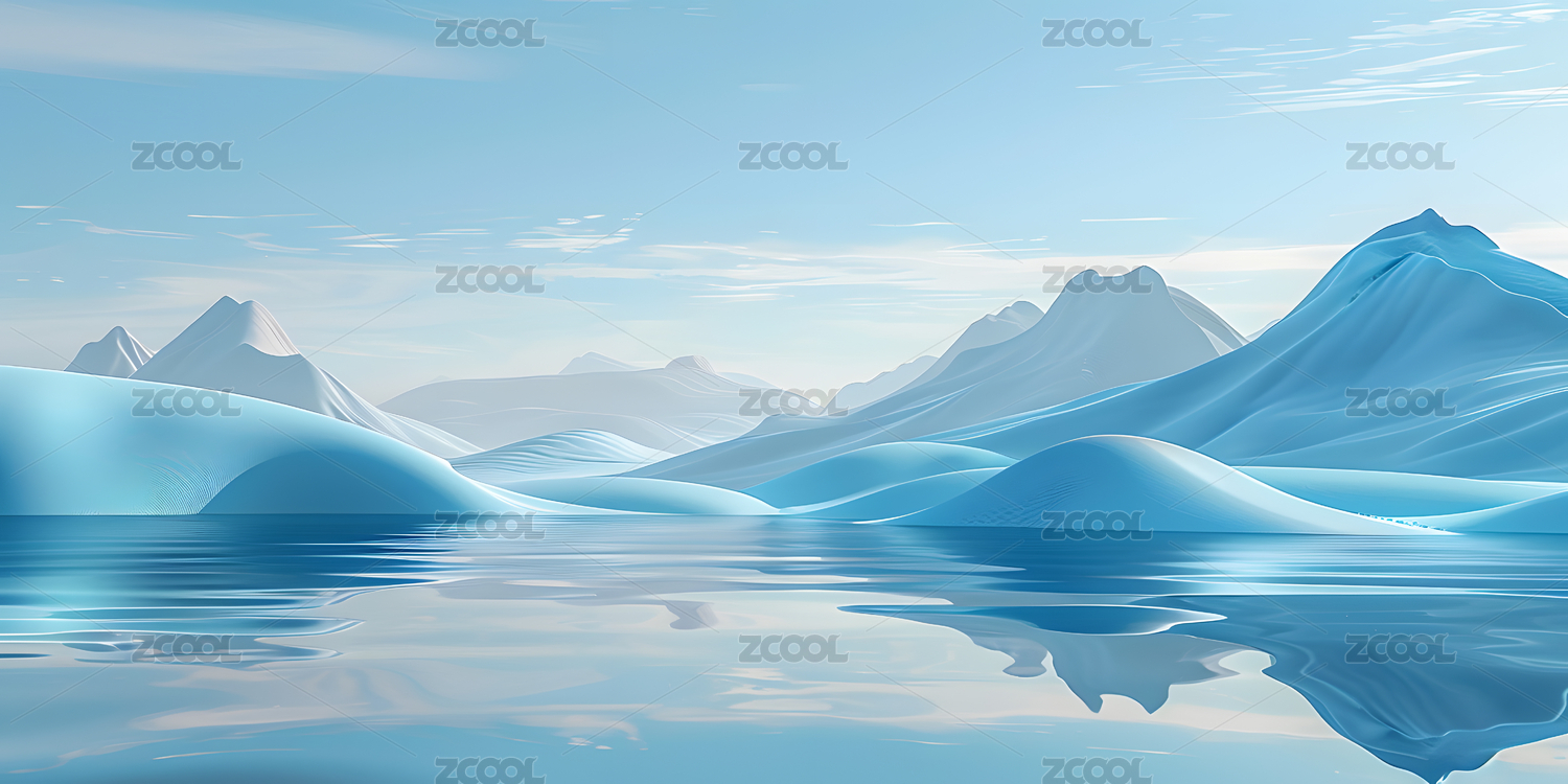 蓝色渐变抽象山脉湖泊倒影景观壁纸背景