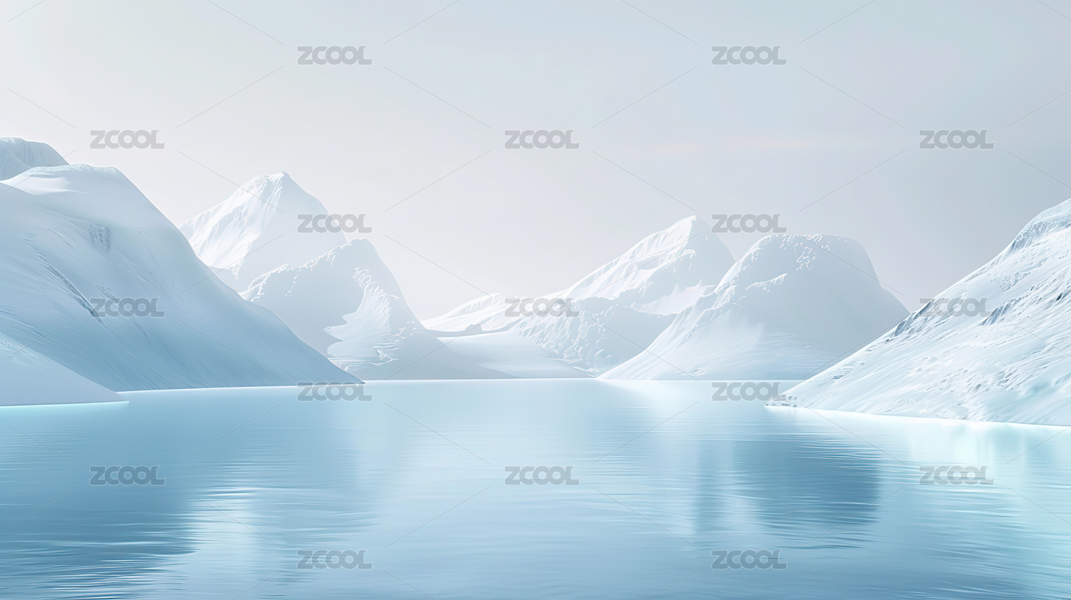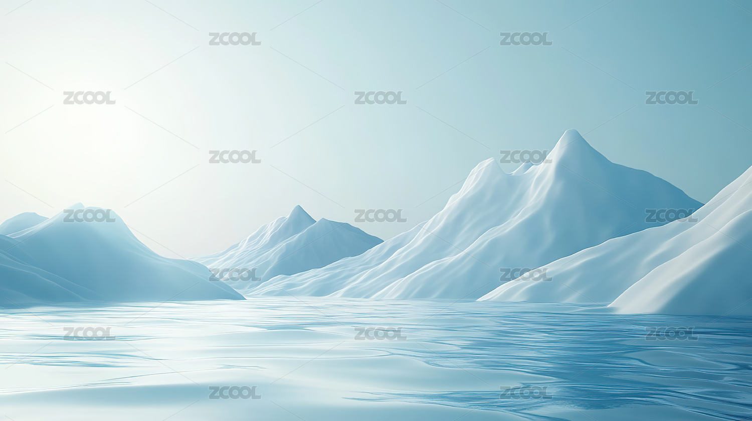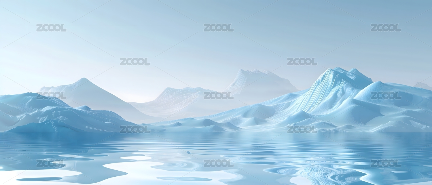 蓝色渐变抽象山脉湖泊倒影景观壁纸背景
