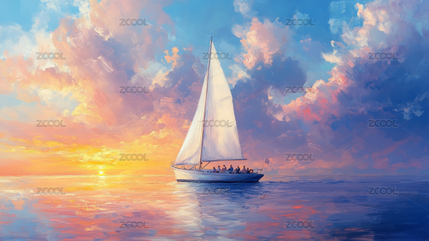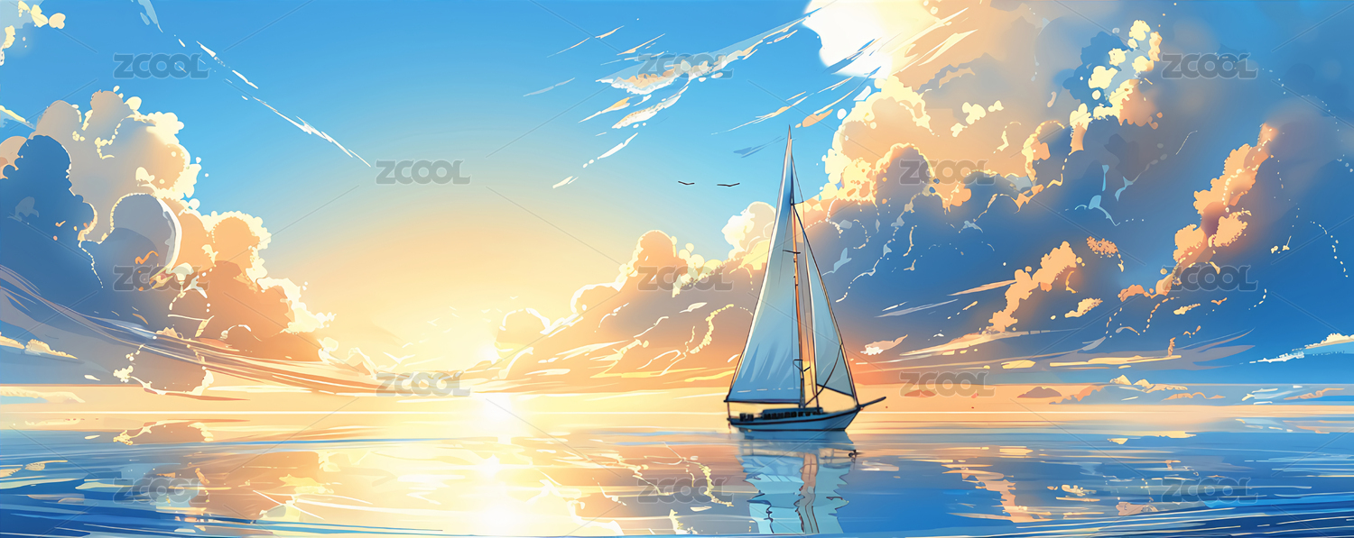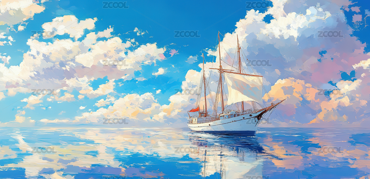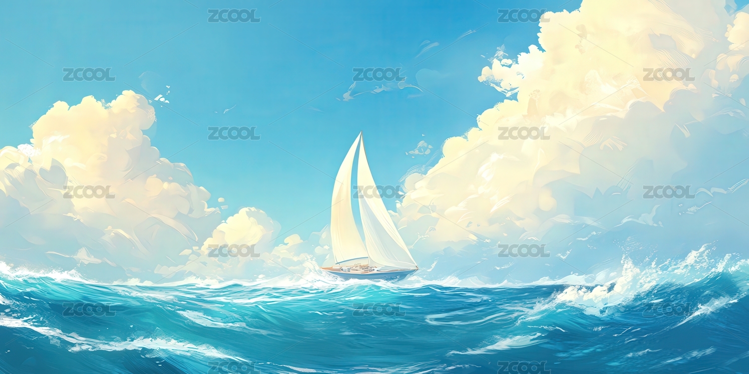 白云下帆船插画