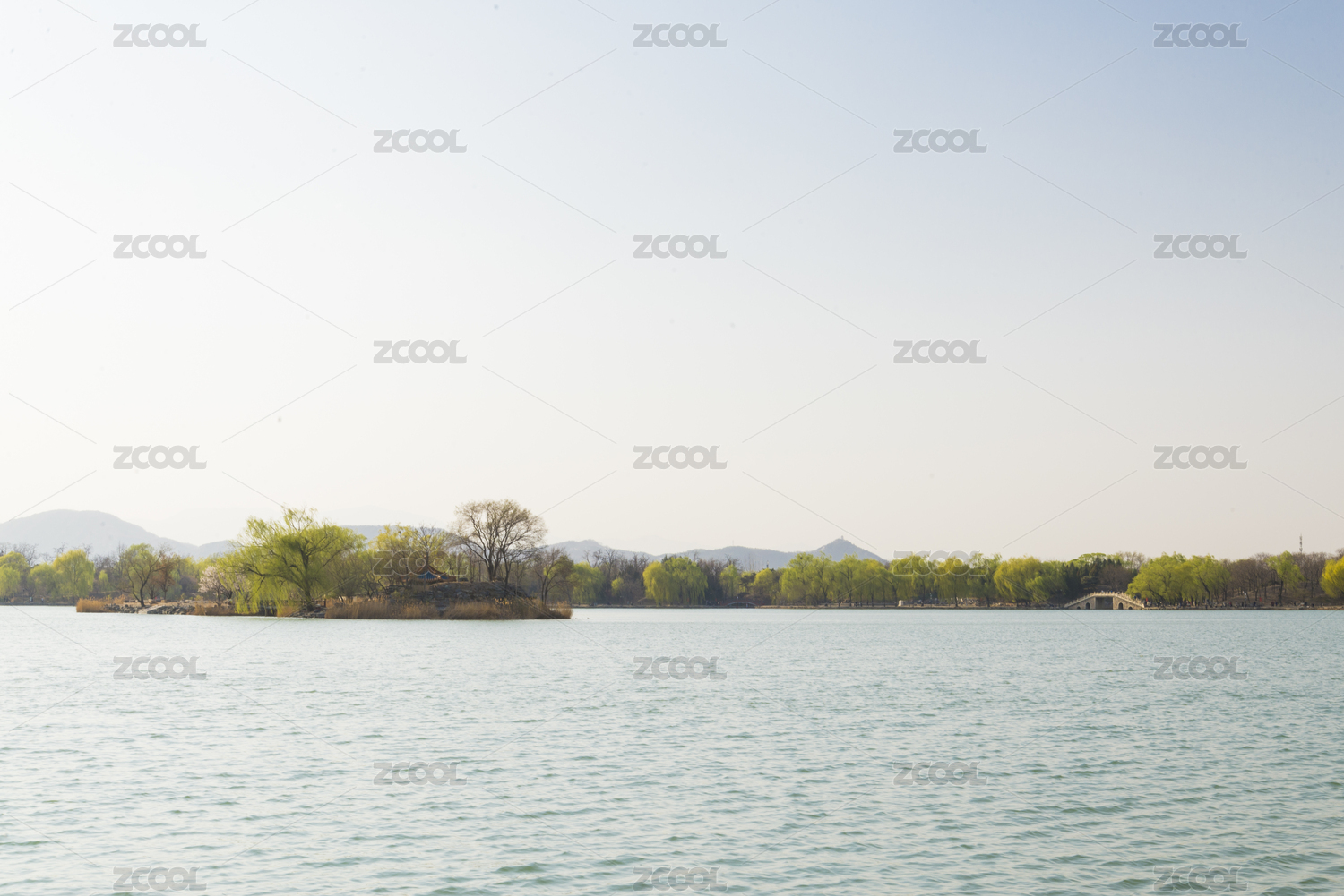 福海,晚霞,夕阳,倒影,傍晚,湖水,园林,圆明园,蓝天