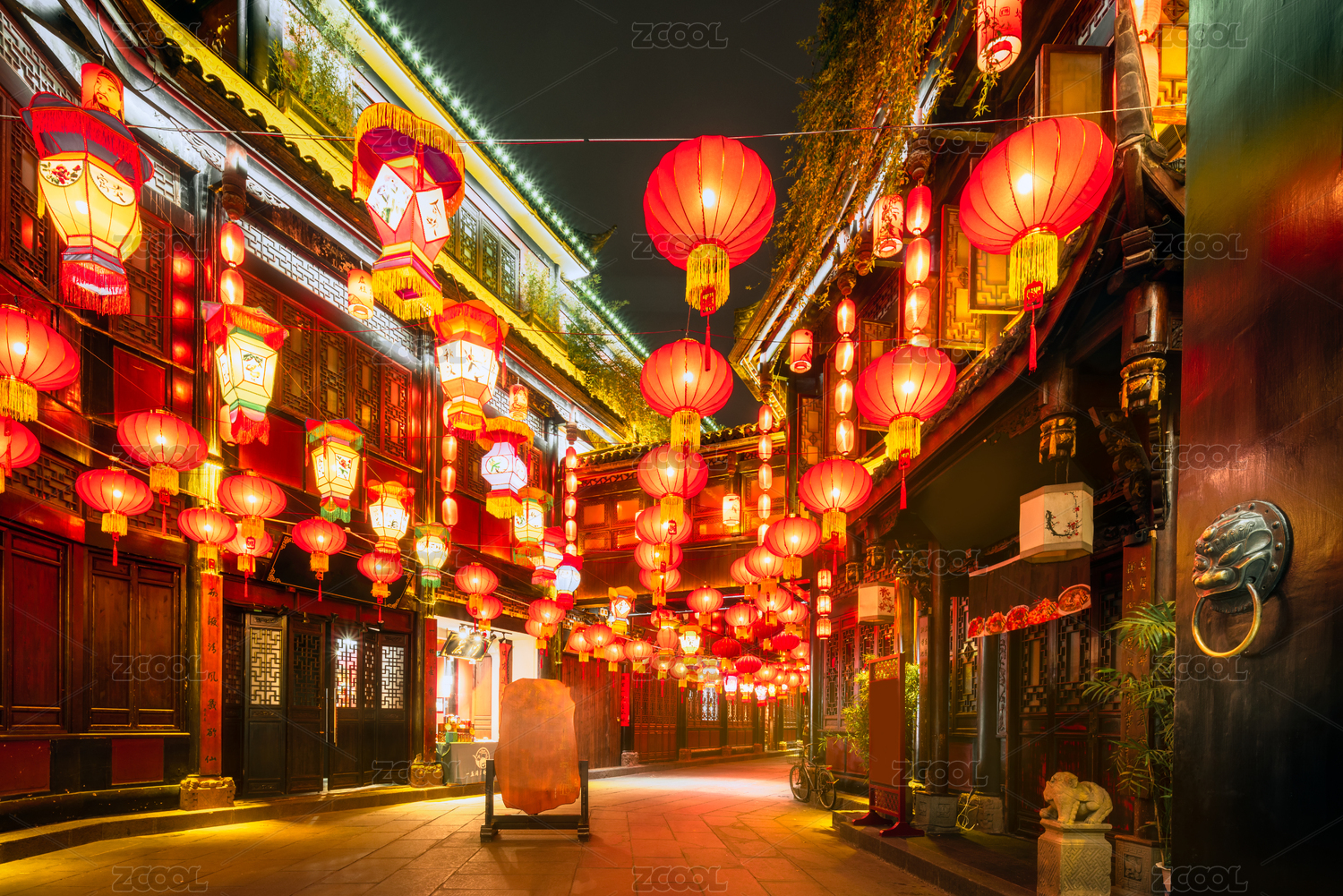 中国新年四川成都锦里古街夜景花灯红灯笼