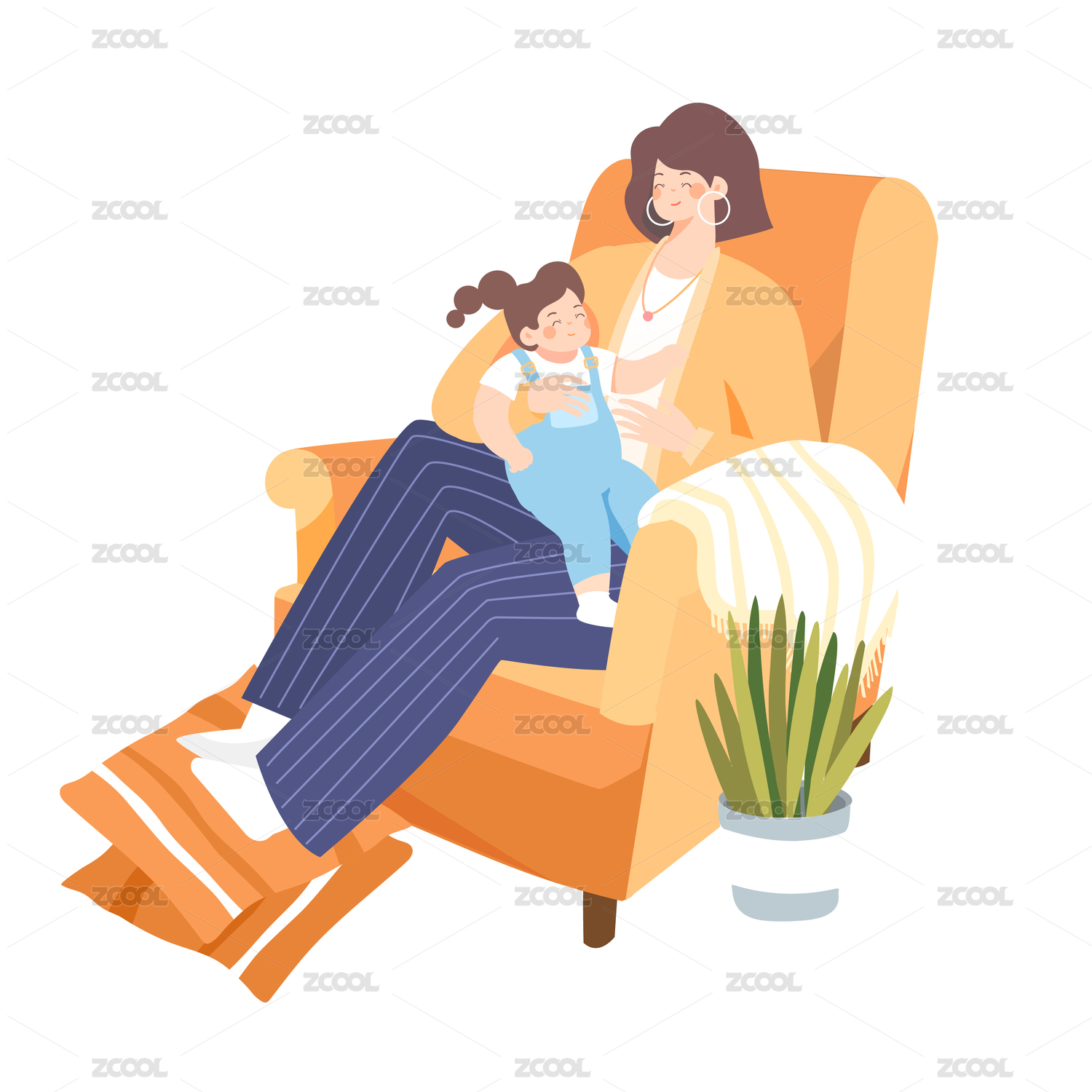 老年人夫妻在家中沙发上相拥 可爱风格重阳节老年人惬意生活插画