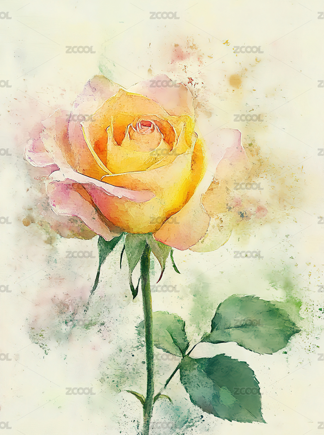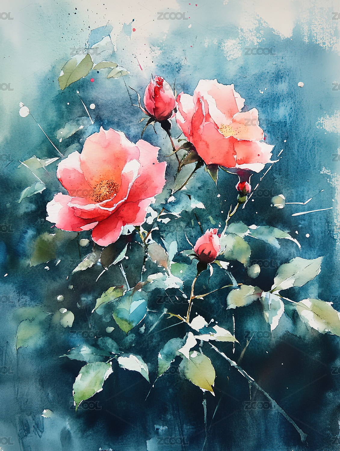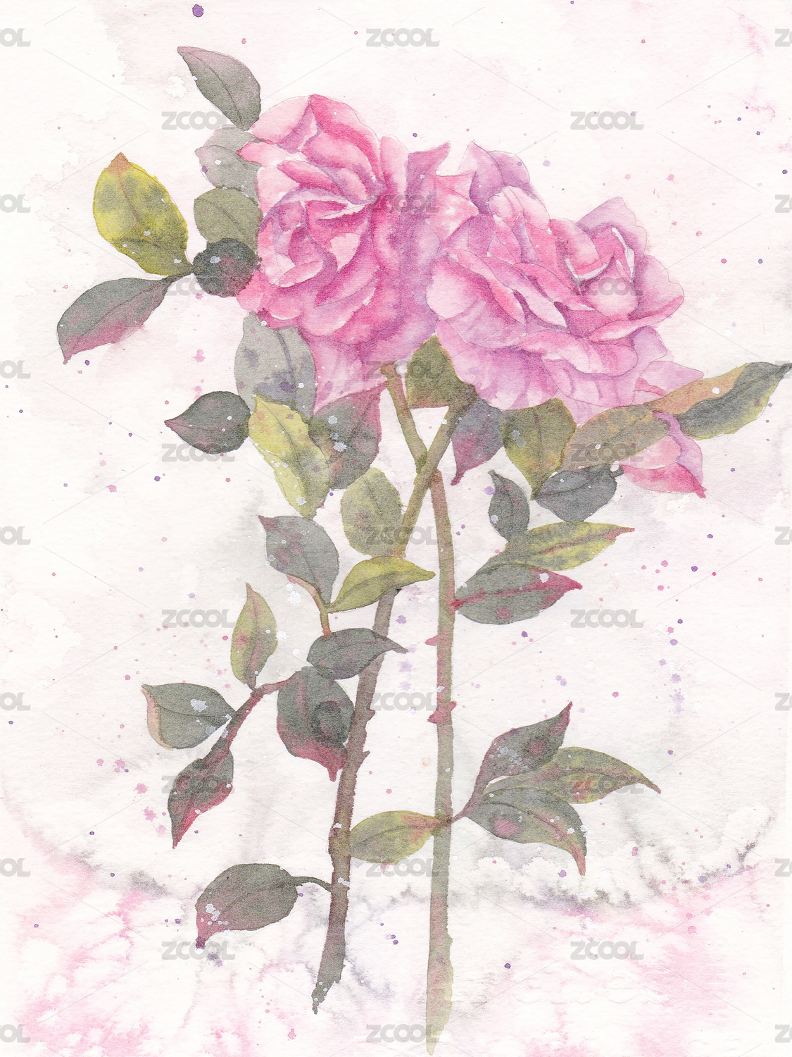 水彩玫瑰艺术插画