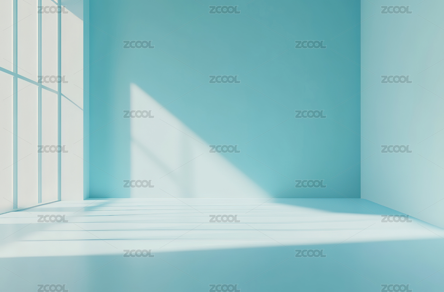 白色背景下的蓝色空房间