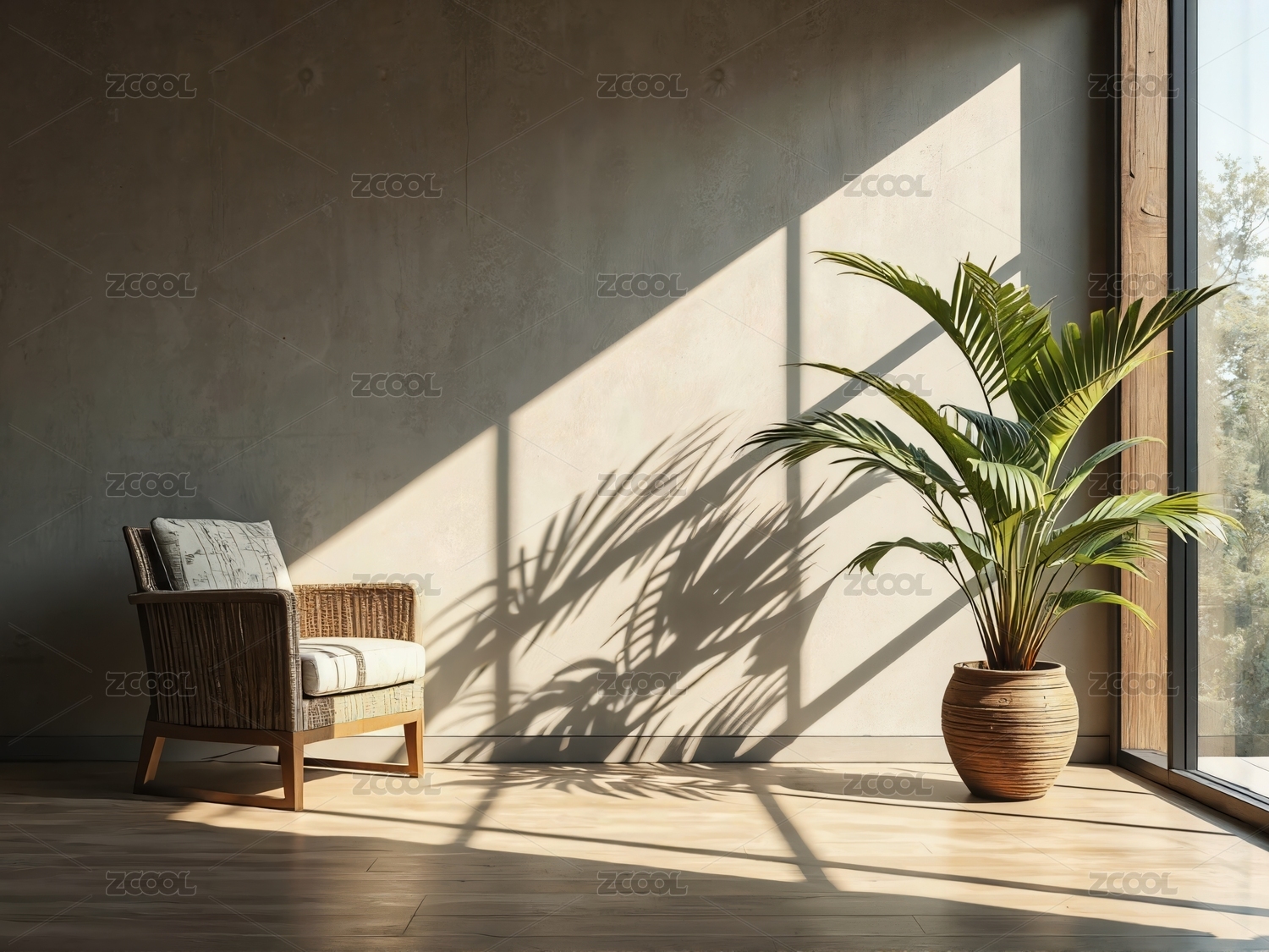 3D室内绿色植物盆栽蓝色墙面空的地面