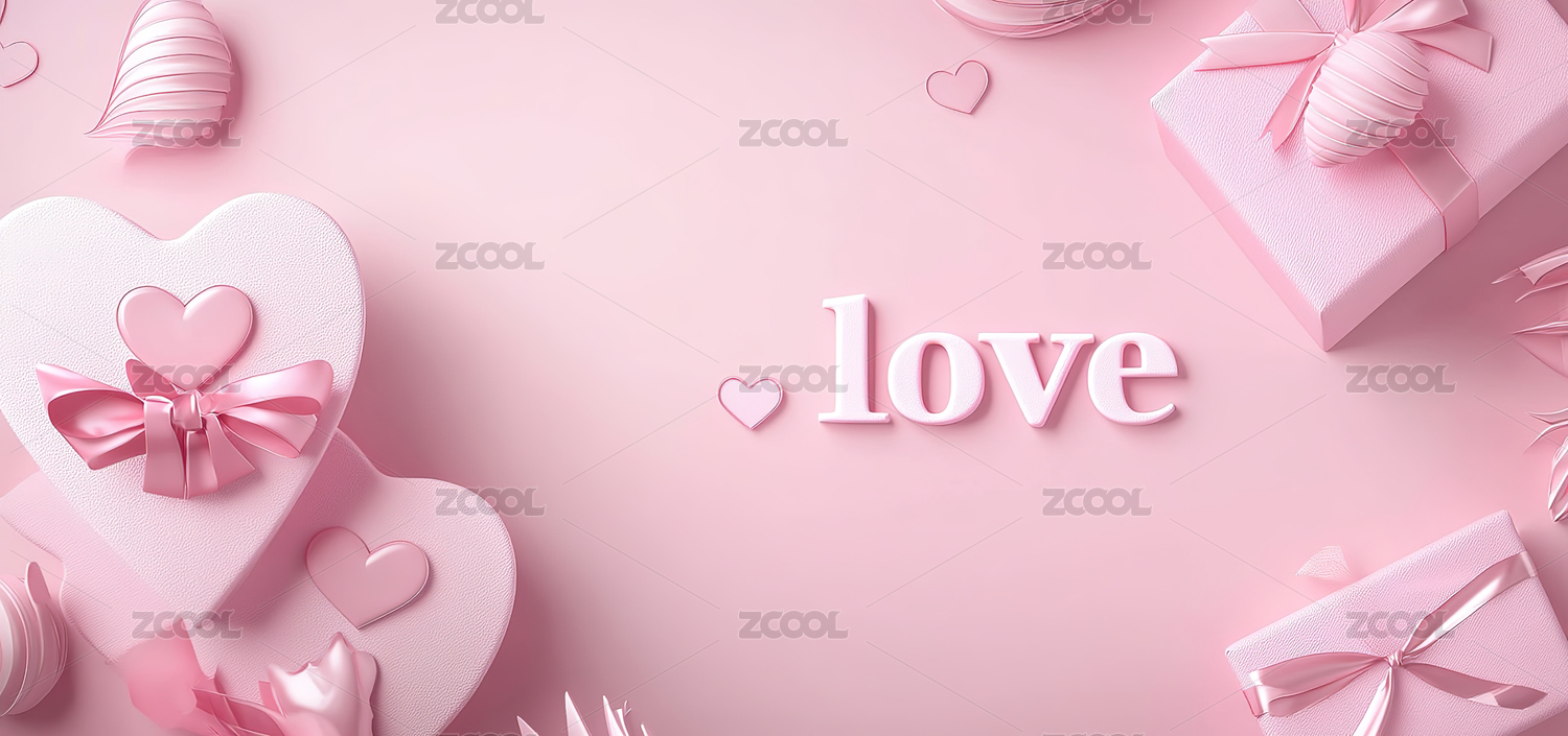 浪漫粉红色礼盒与金色蝴蝶结点缀的心形装饰