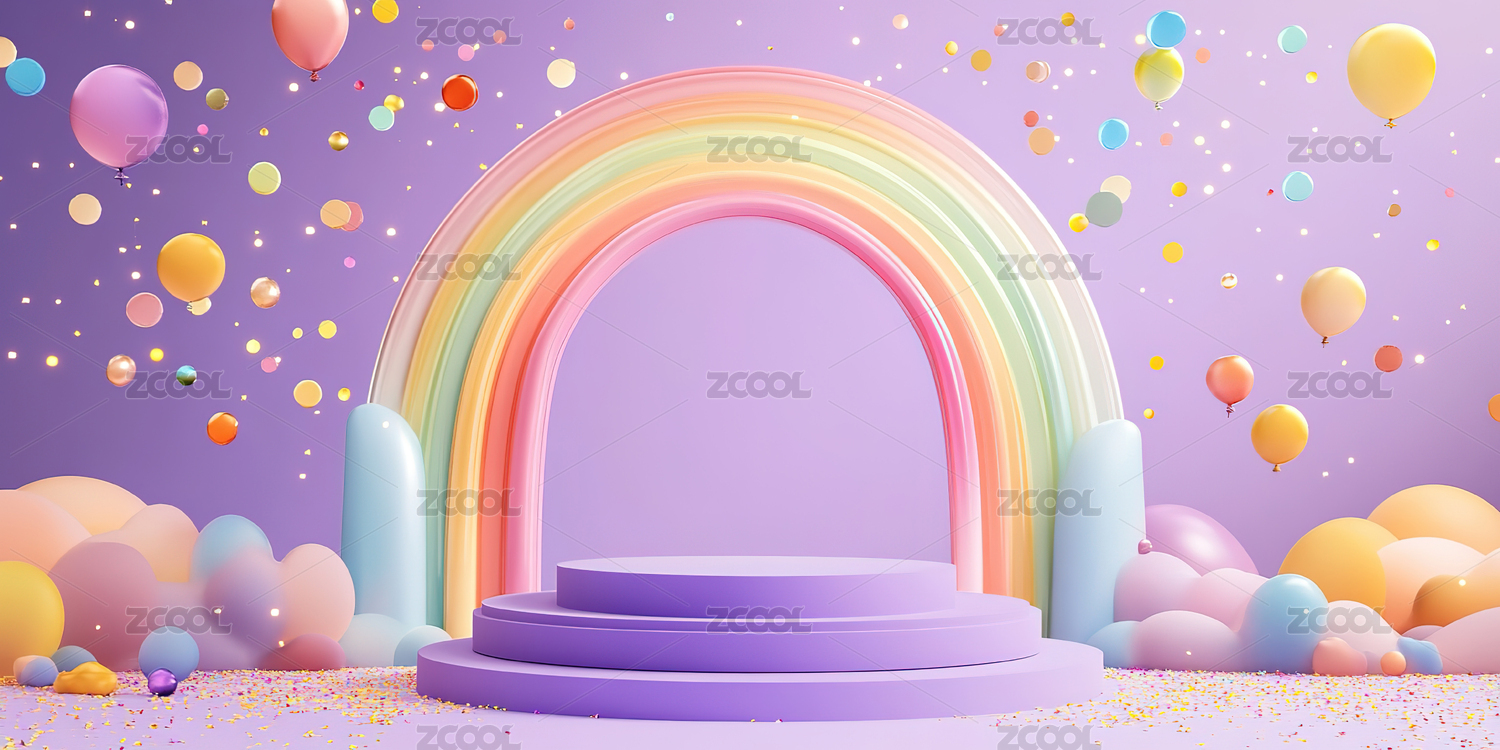 3D卡通花朵彩虹展台电商背景