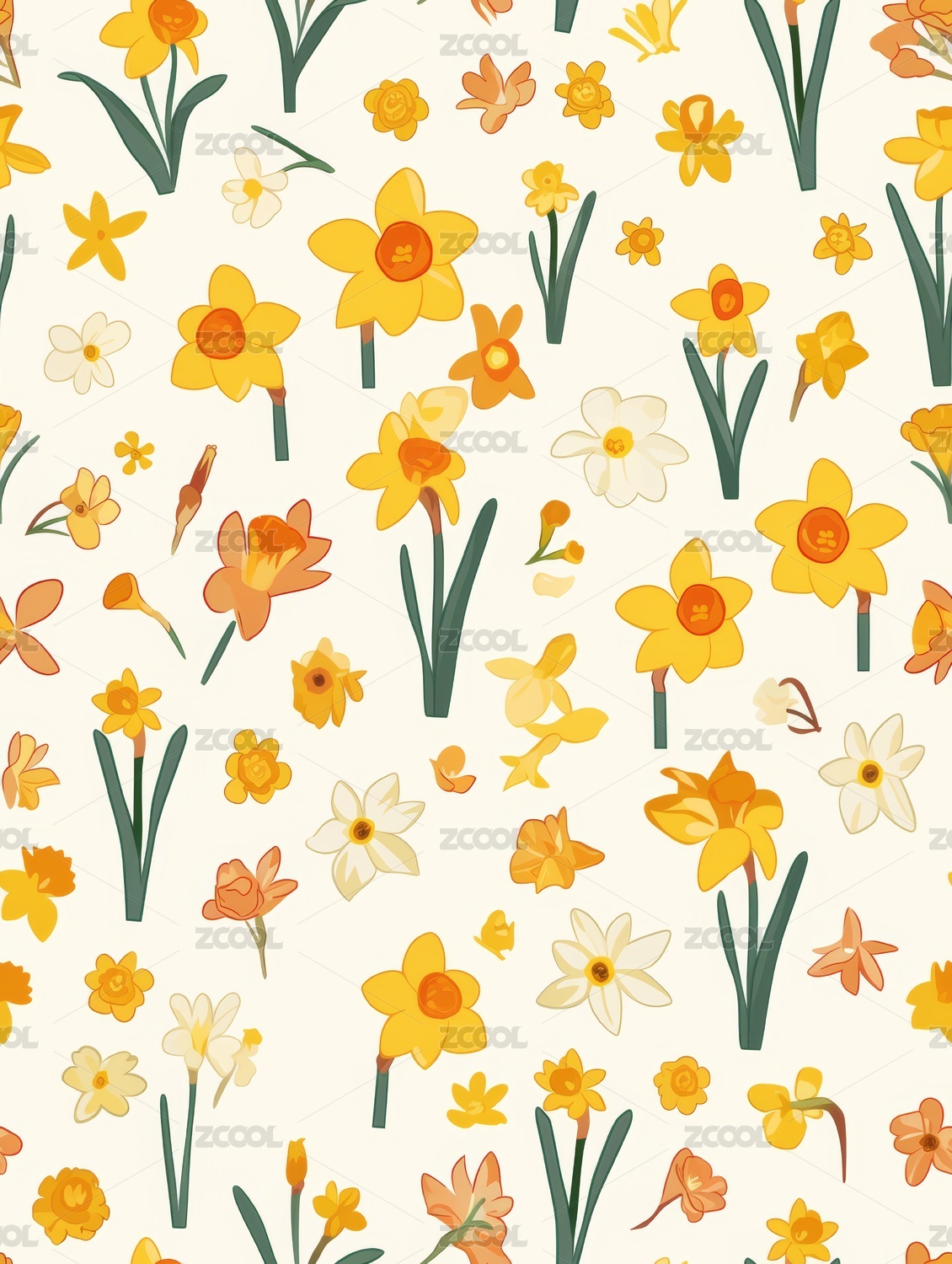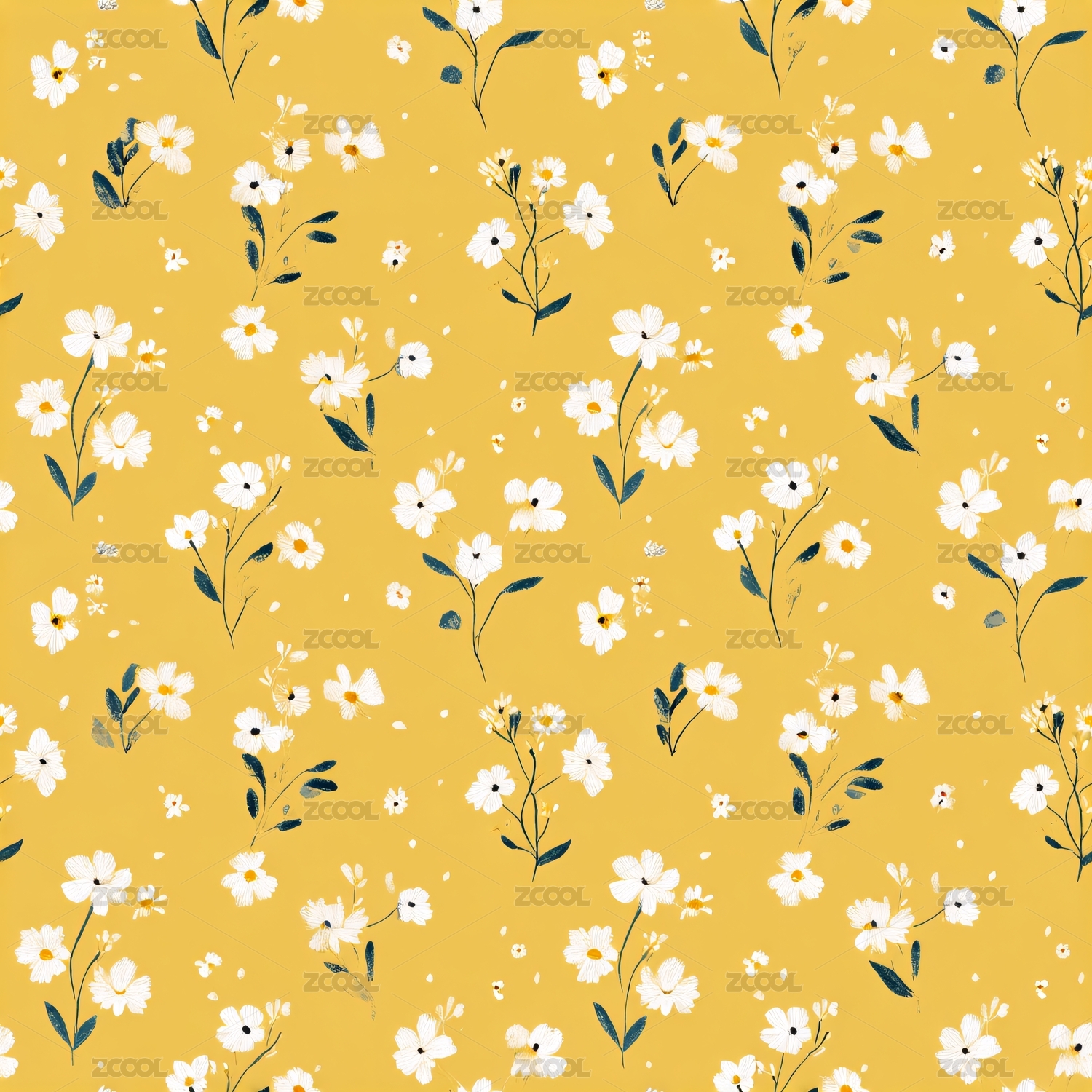 淡黄色碎花四方连续无缝图案