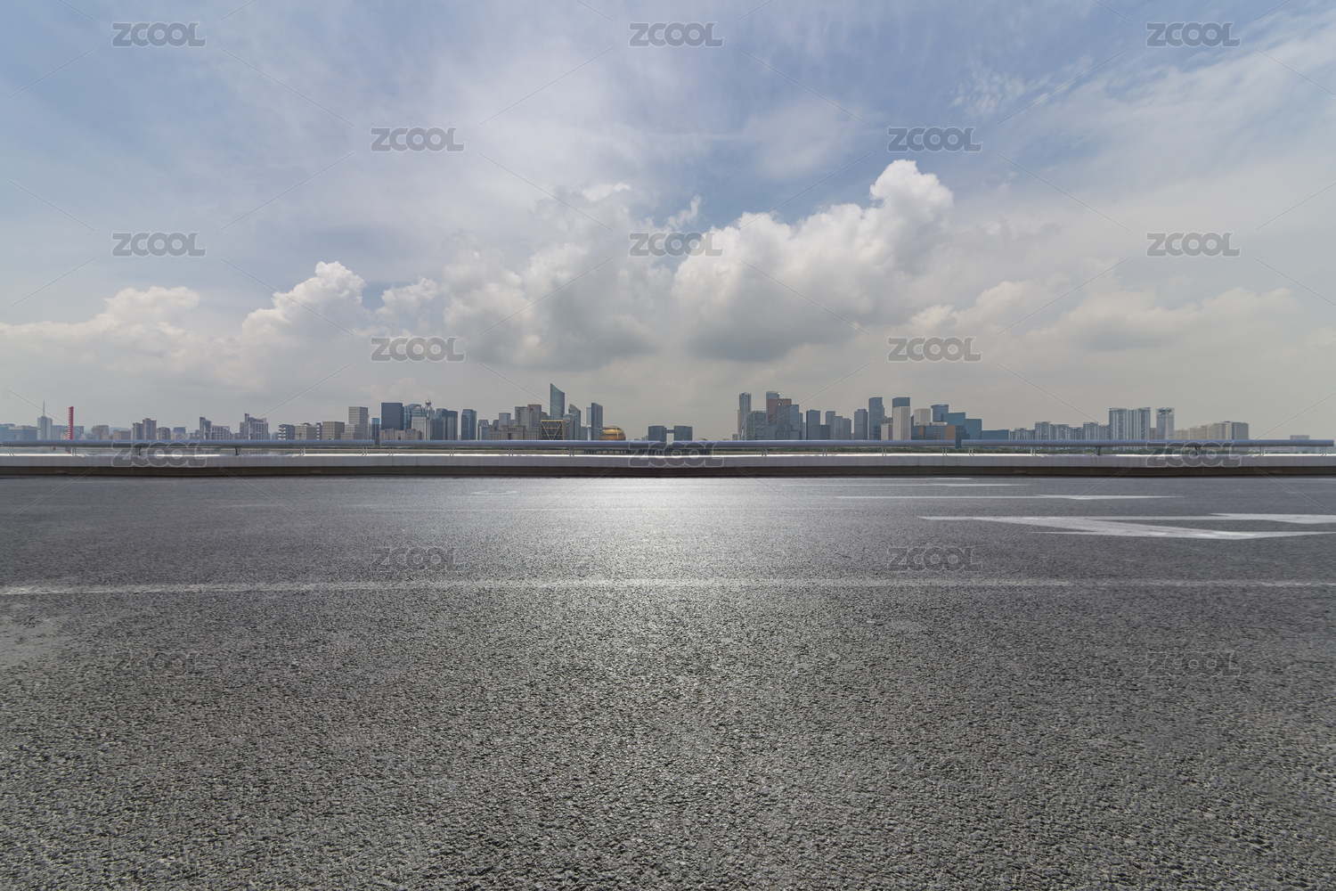 以浙江杭州钱塘新城建筑为背景的高速路面