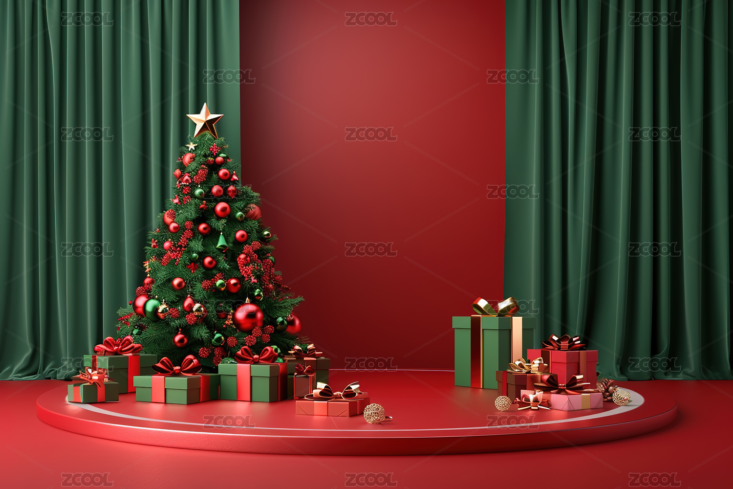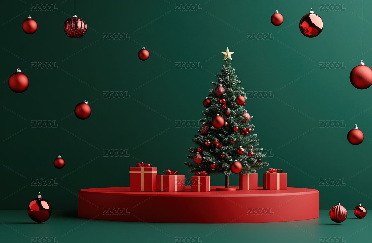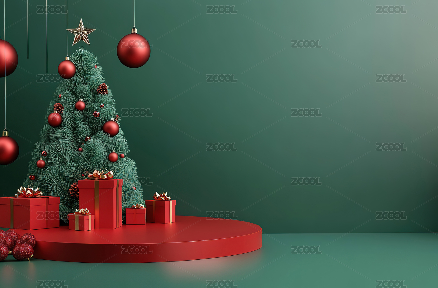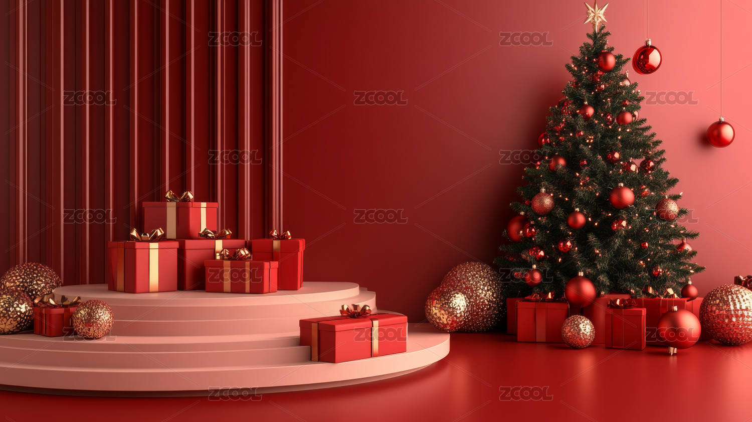 3D渲染红色圣诞节主题电商产品展台背景
