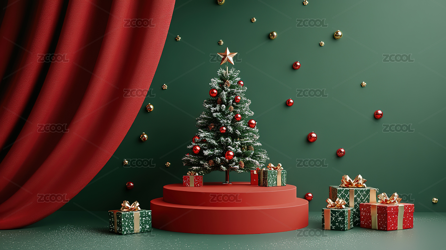 三维图形圣诞节节日背景和礼物展台