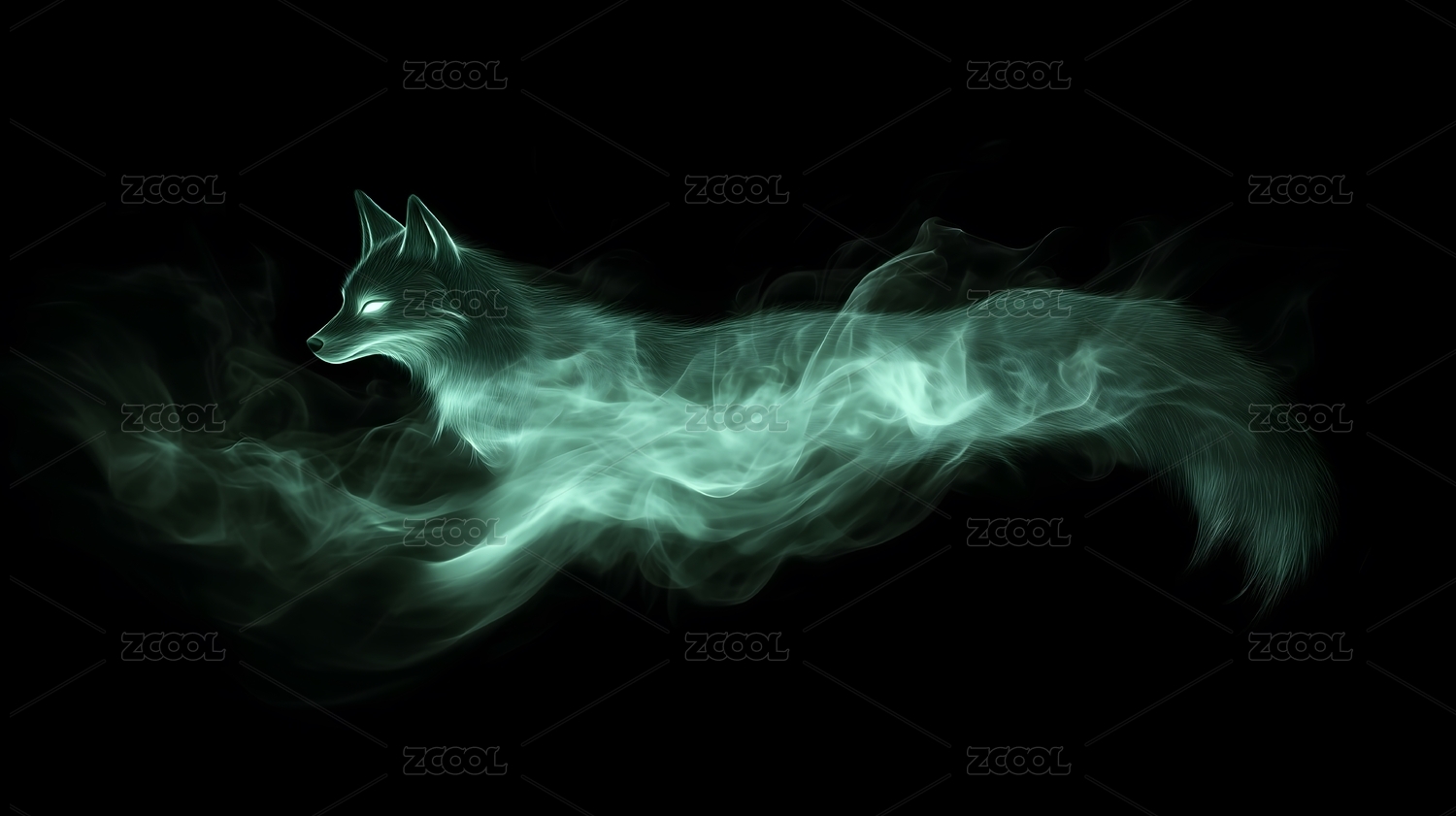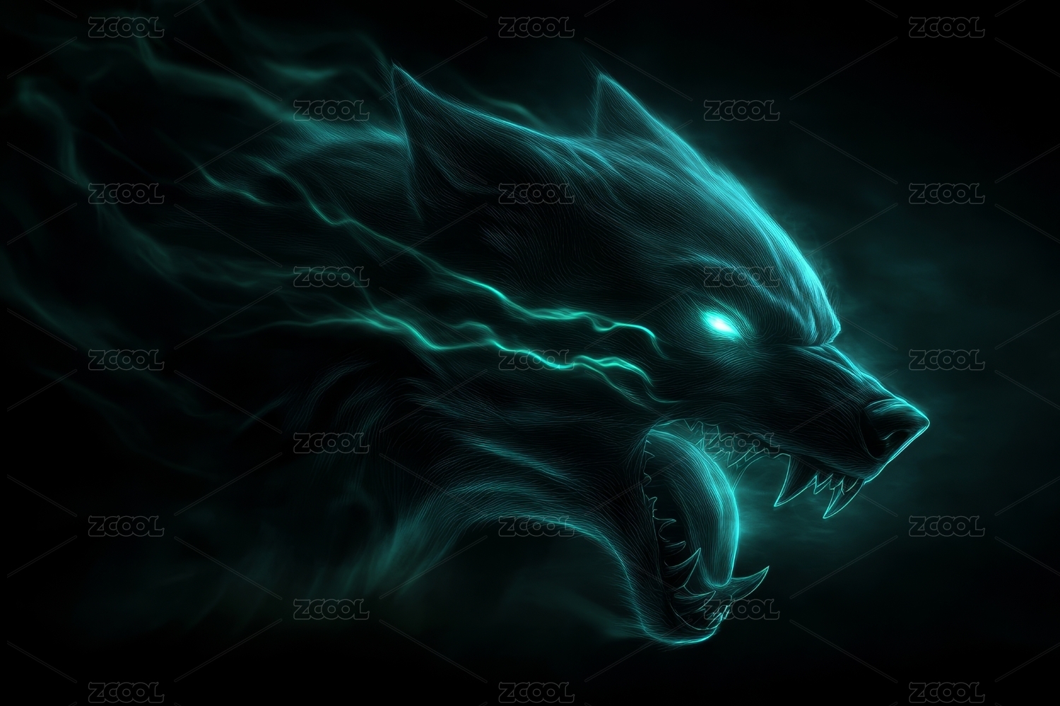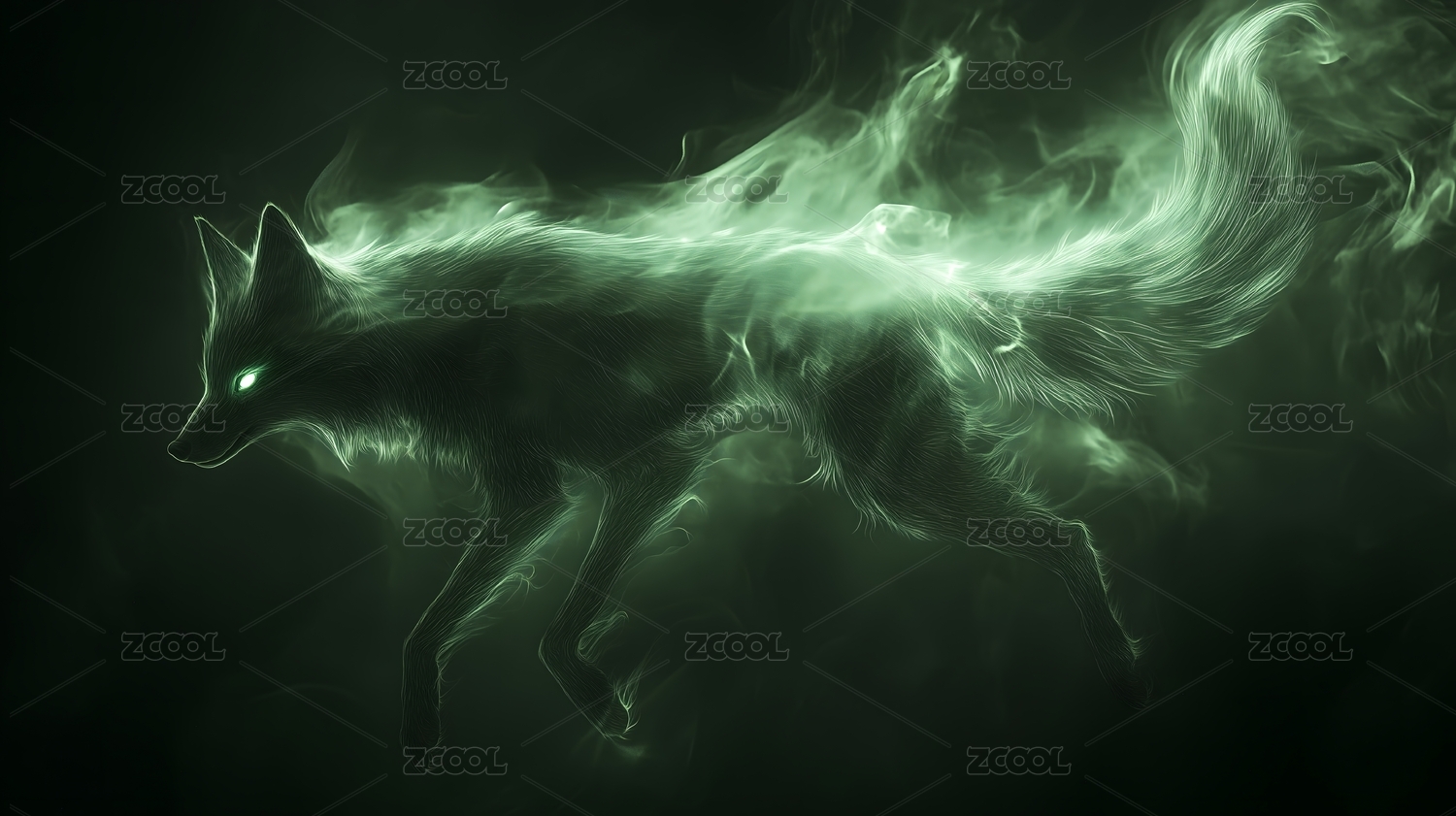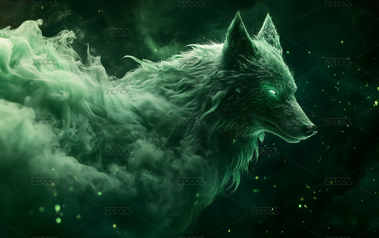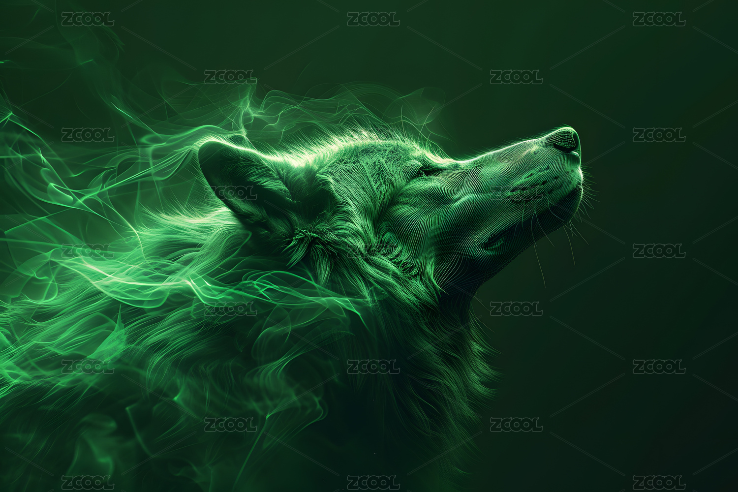 元宇宙数字成像一只散发绿色荧光的狼背景