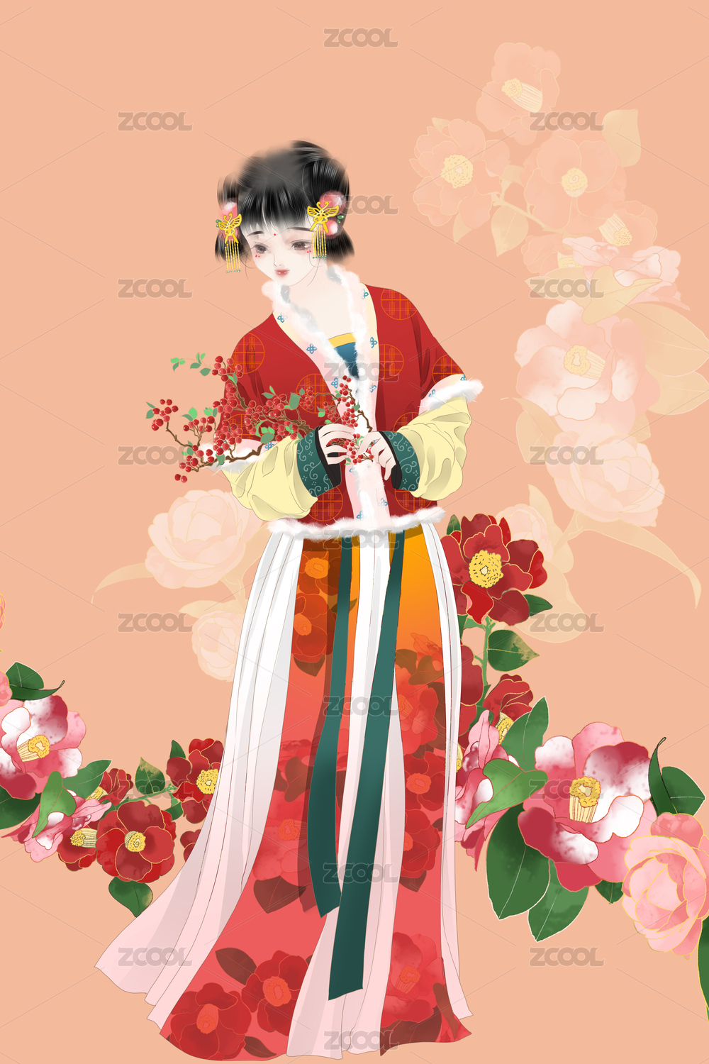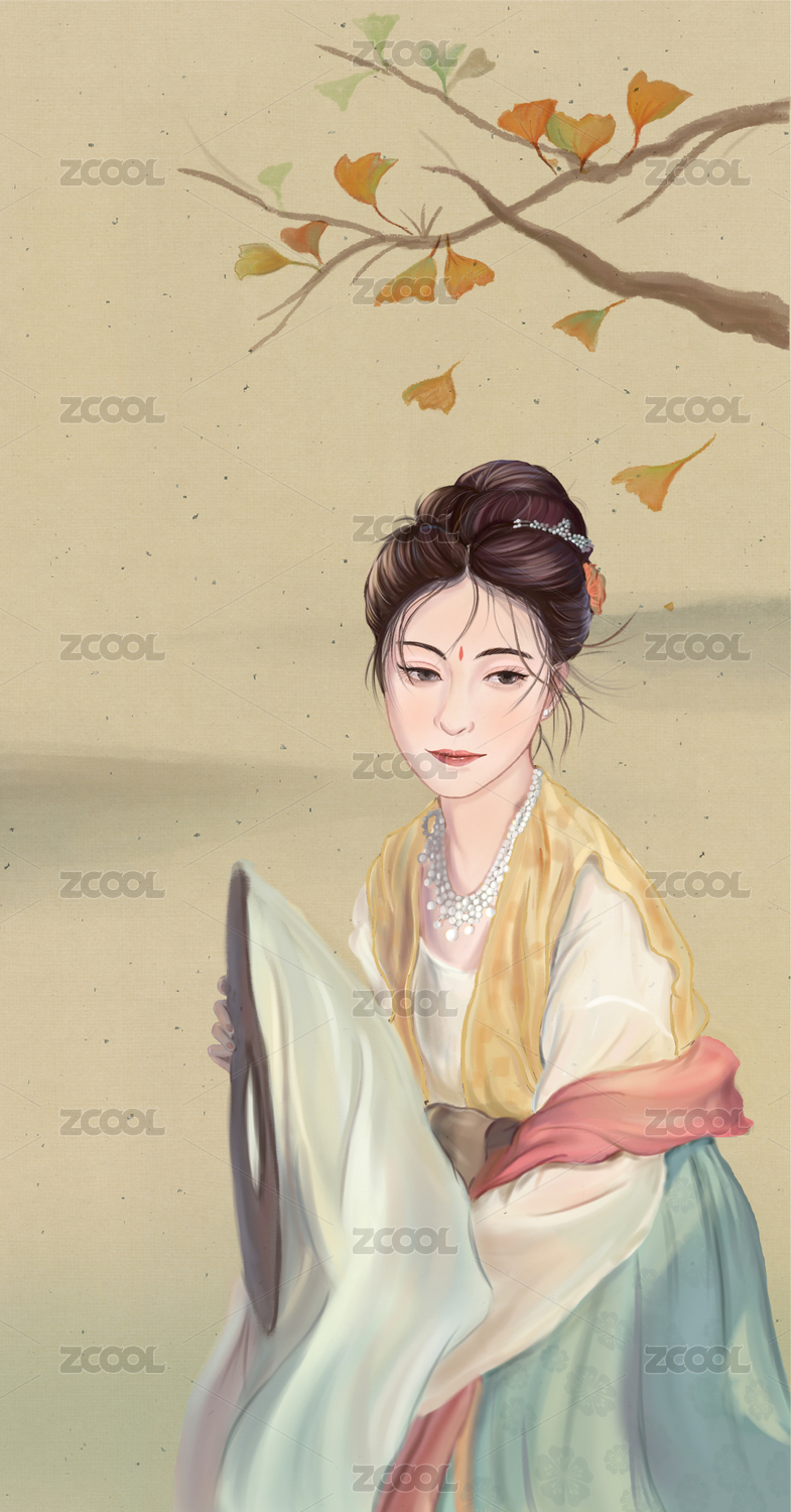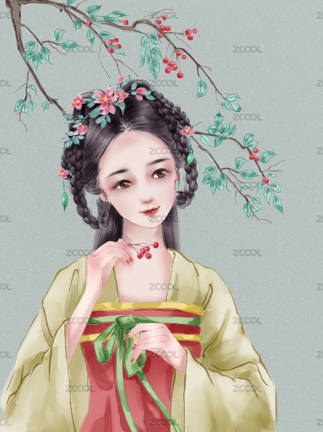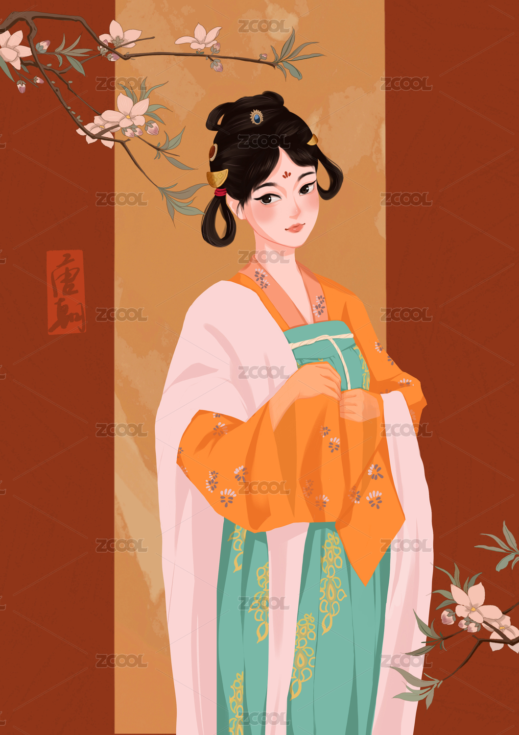 古风,唐装,女子,插画,唐朝,中国风,水墨,插图,素材,元素