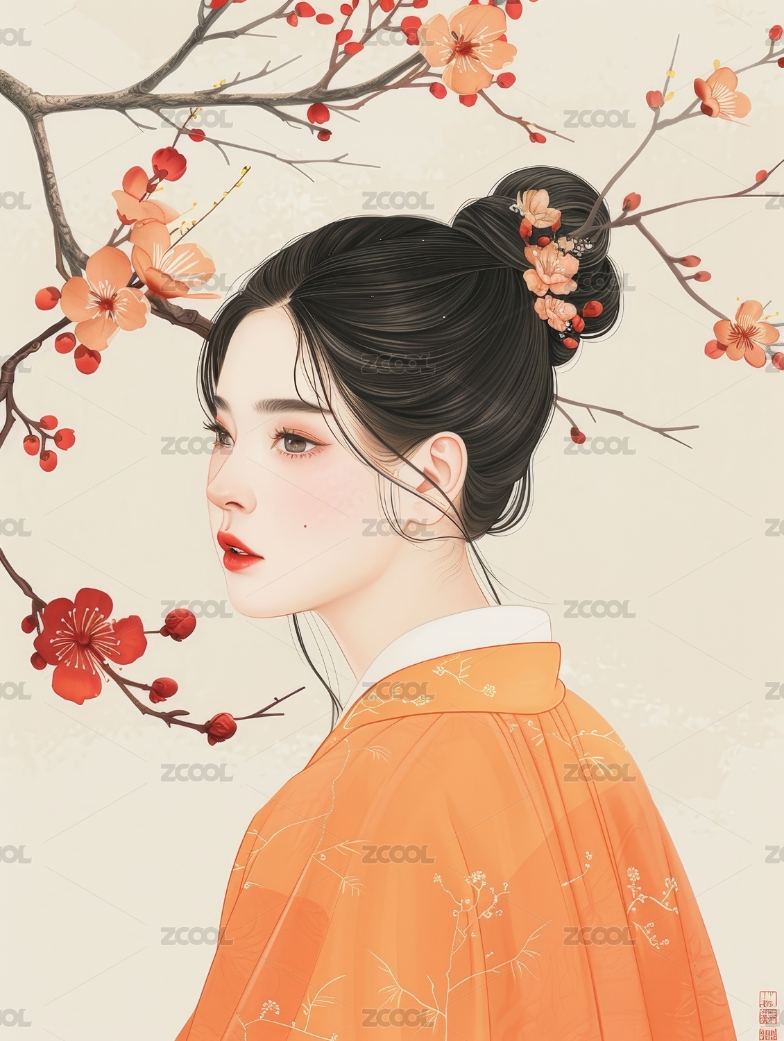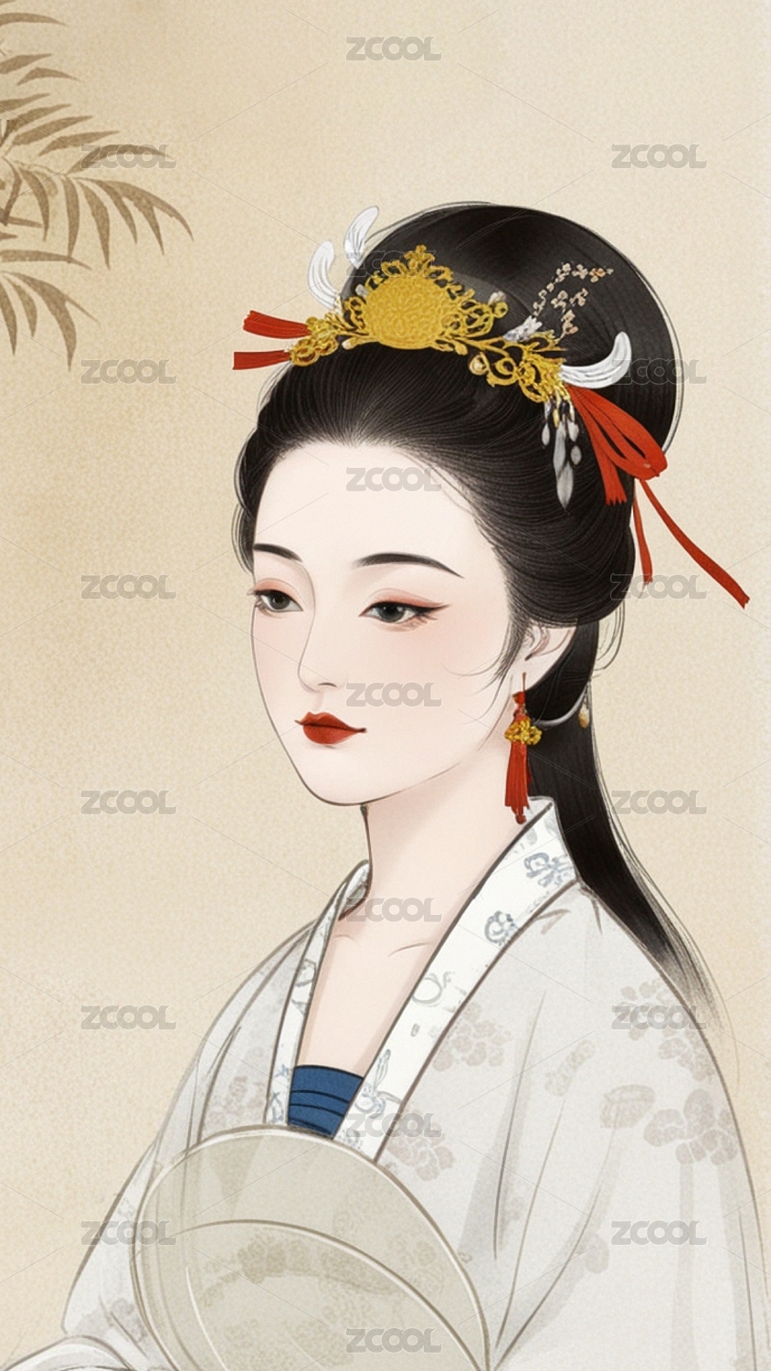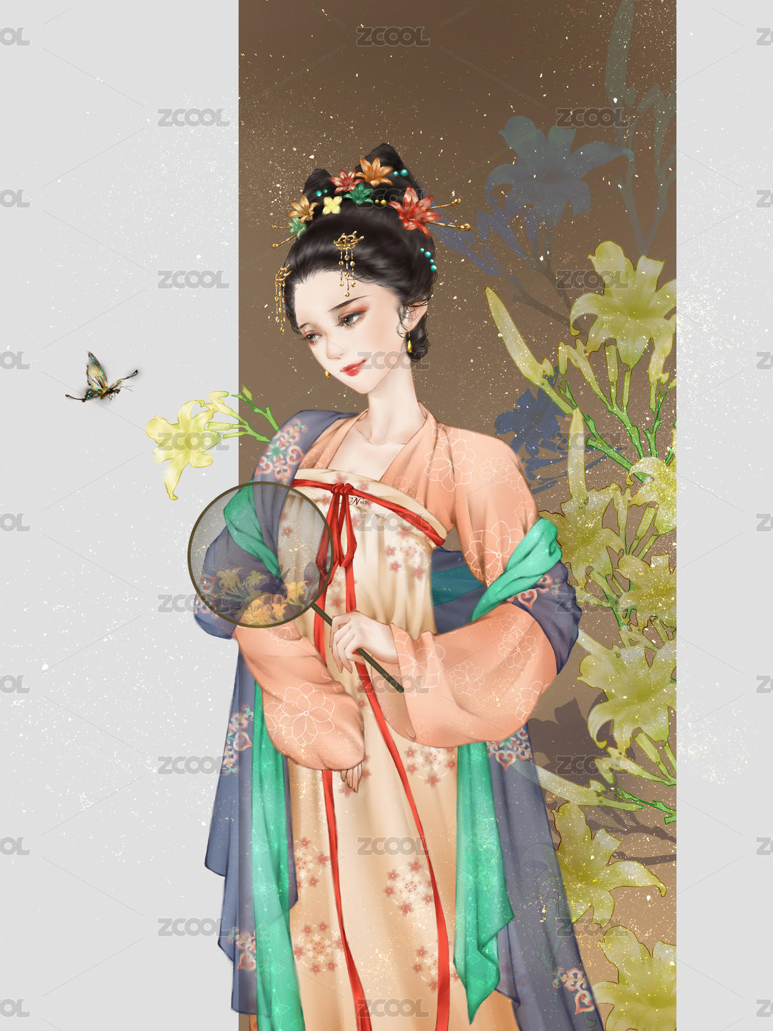 古风,唐装,女子,插画,唐朝,中国风,水墨,插图,素材,元素